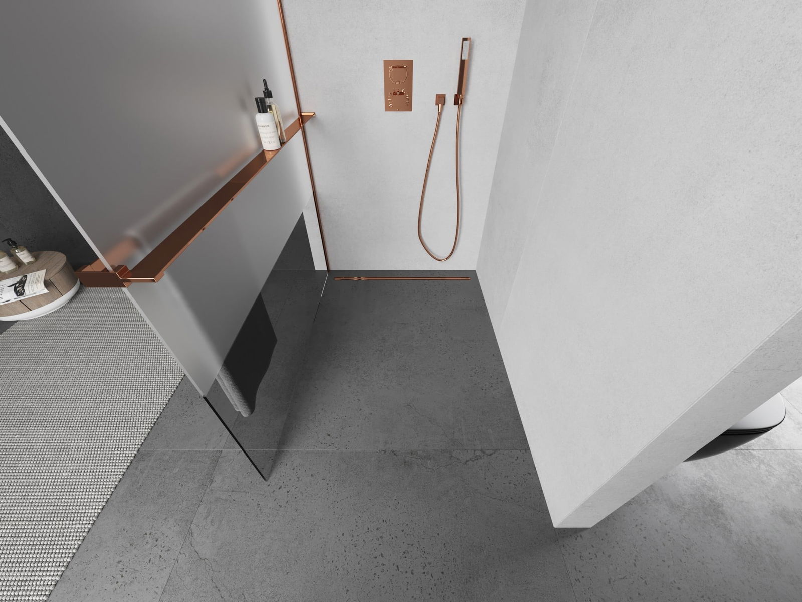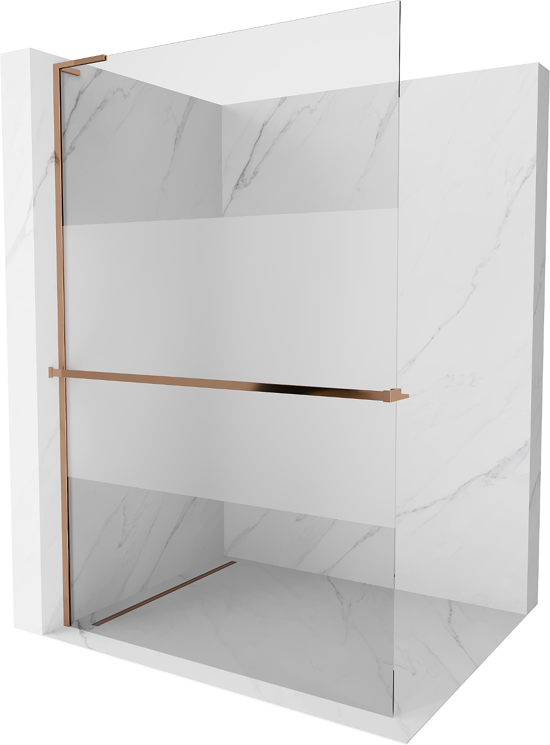 Mexen Kioto+ L koupelnová stěna s poličkou Walk-in 80 x 200 cm, transparentní/mat, růžové zlato - 800-080-123-60-35