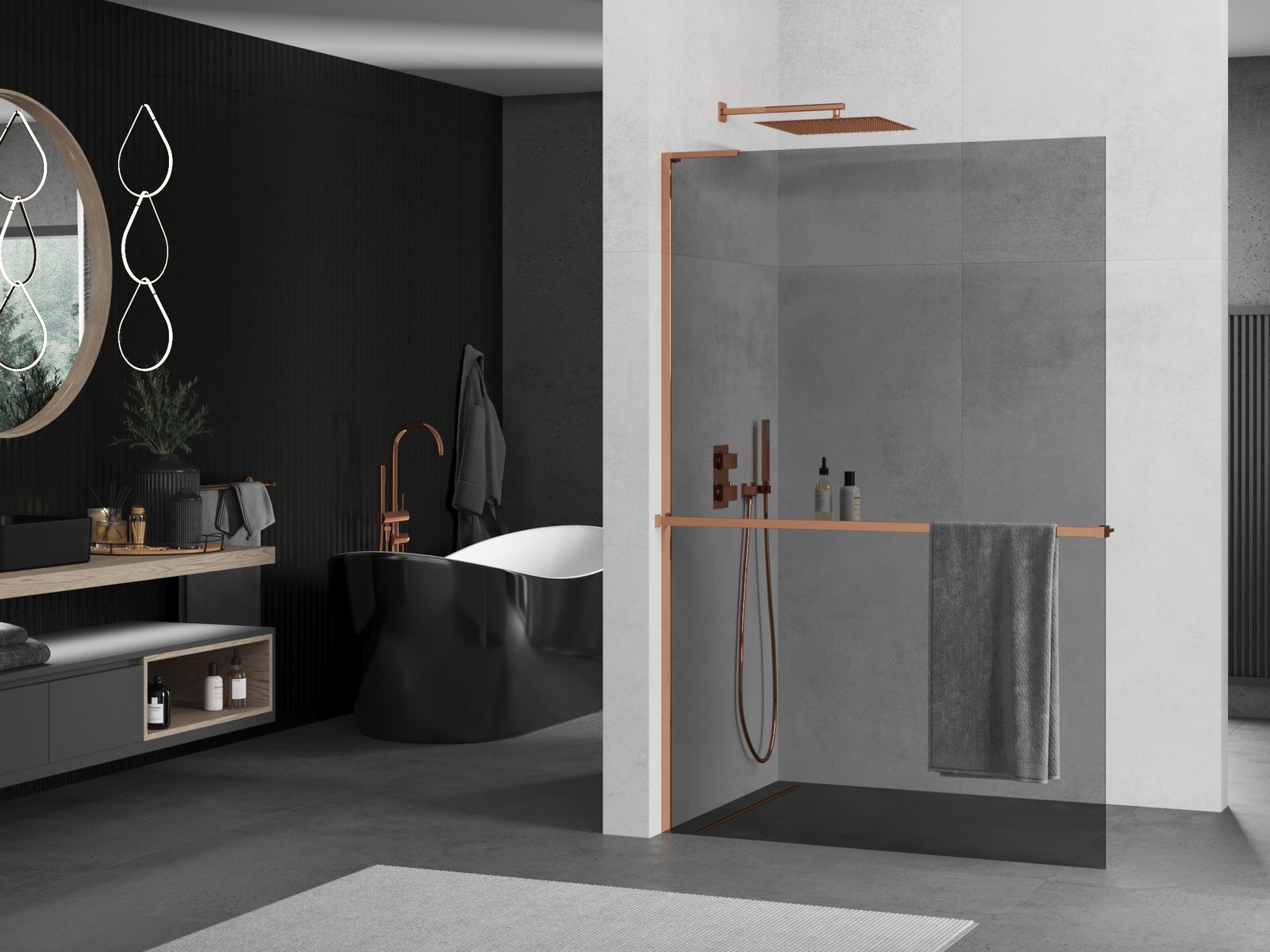 Mexen Kioto+ L sprchová stěna s poličkou Walk-in 70 x 200 cm, grafit, růžové zlato - 800-070-123-60-40