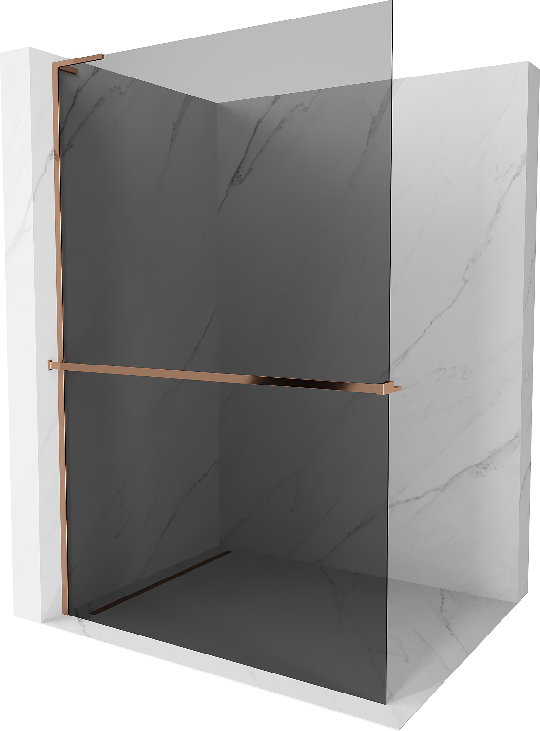 Mexen Kioto+ L sprchová stěna s poličkou Walk-in 80 x 200 cm, grafit, růžové zlato - 800-080-123-60-40