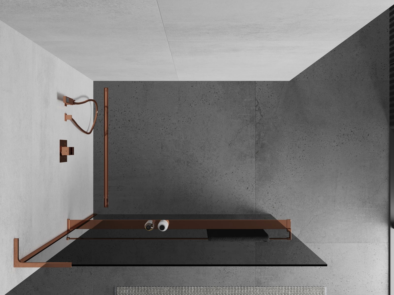 Mexen Kioto+ L sprchová stěna s poličkou Walk-in 110 x 200 cm, grafit, růžové zlato - 800-110-123-60-40