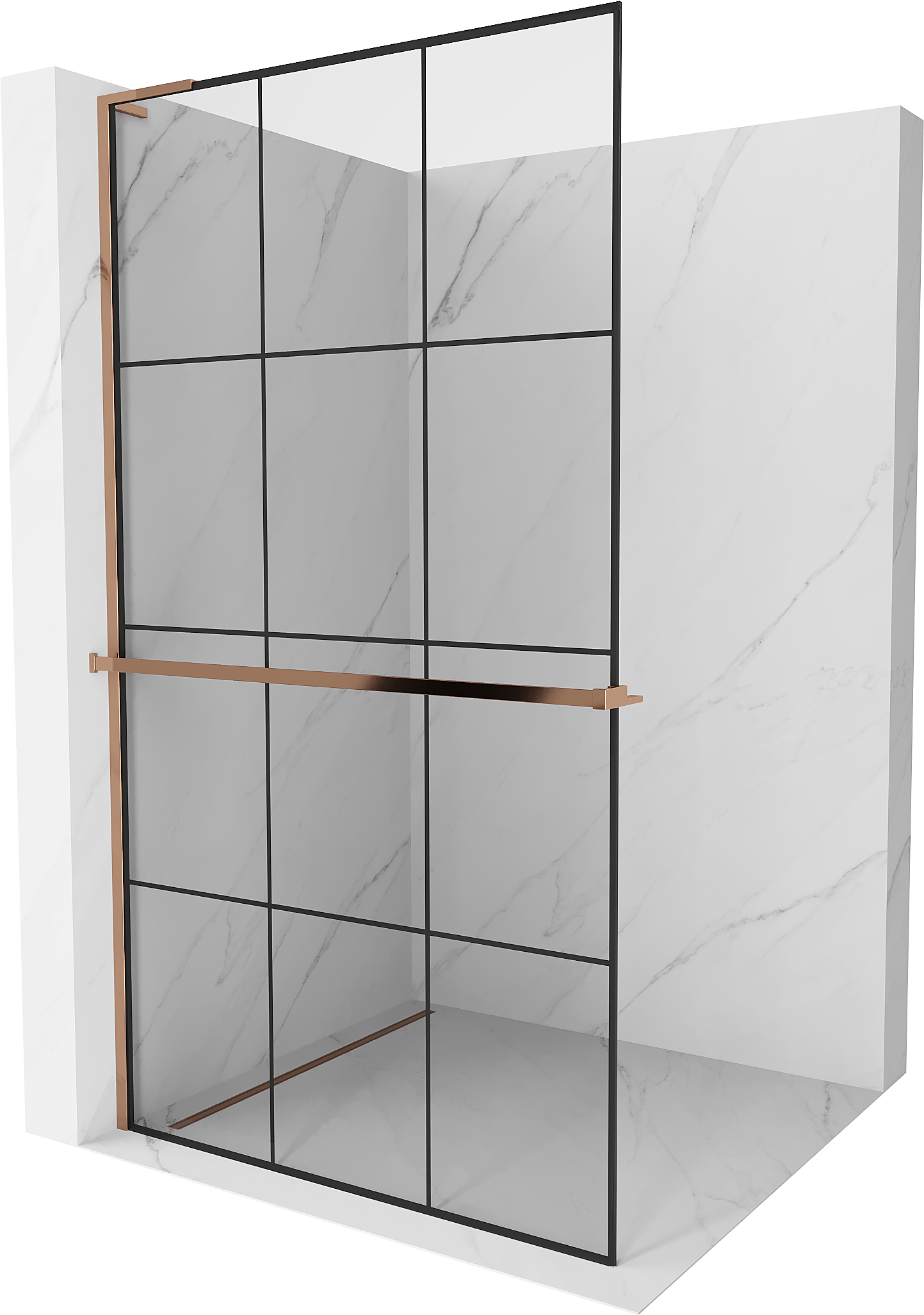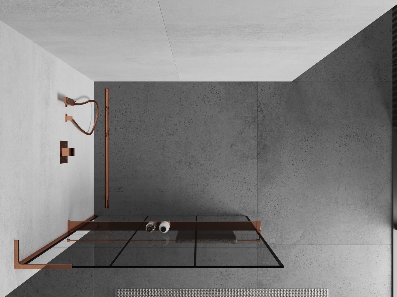 Mexen Kioto+ L sprchová stěna s poličkou Walk-in 100 x 200 cm, černá mřížka, růžové zlato - 800-100-123-60-77