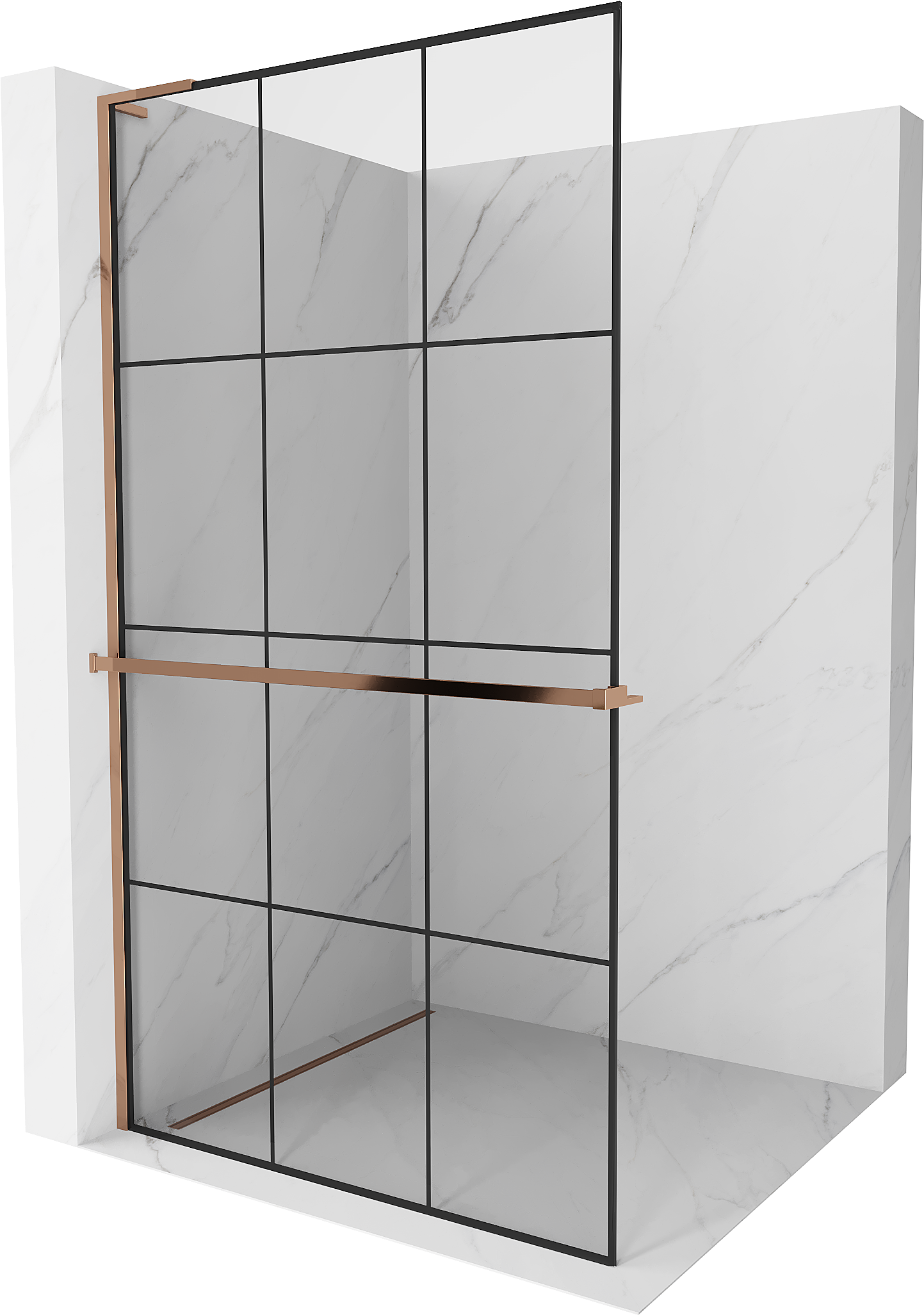 Mexen Kioto+ L sprchová stěna s policí Walk-in 110 x 200 cm, černá mřížka, růžové zlato - 800-110-123-60-77