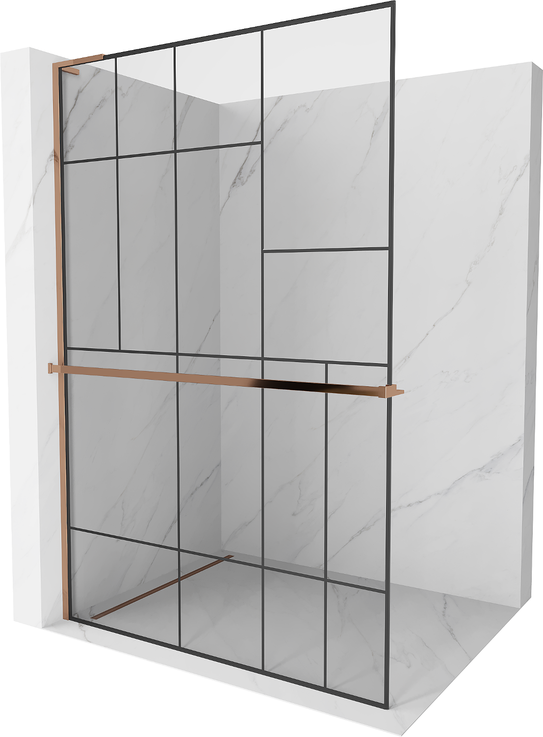 Mexen Kioto+ L sprchová stěna s policí Walk-in 110 x 200 cm, černý vzor, růžové zlato - 800-110-123-60-78