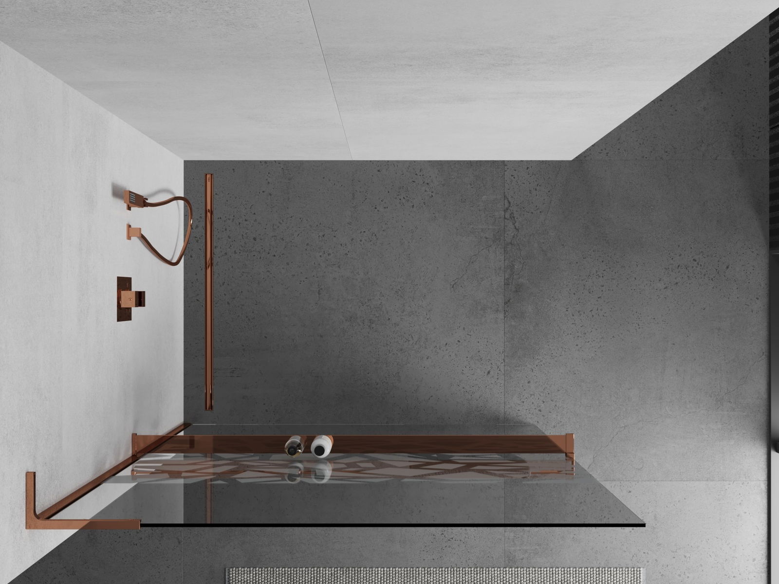 Mexen Kioto+ L sprchová stěna s poličkou Walk-in 110 x 200 cm, bílý vzor, růžové zlato - 800-110-123-60-85
