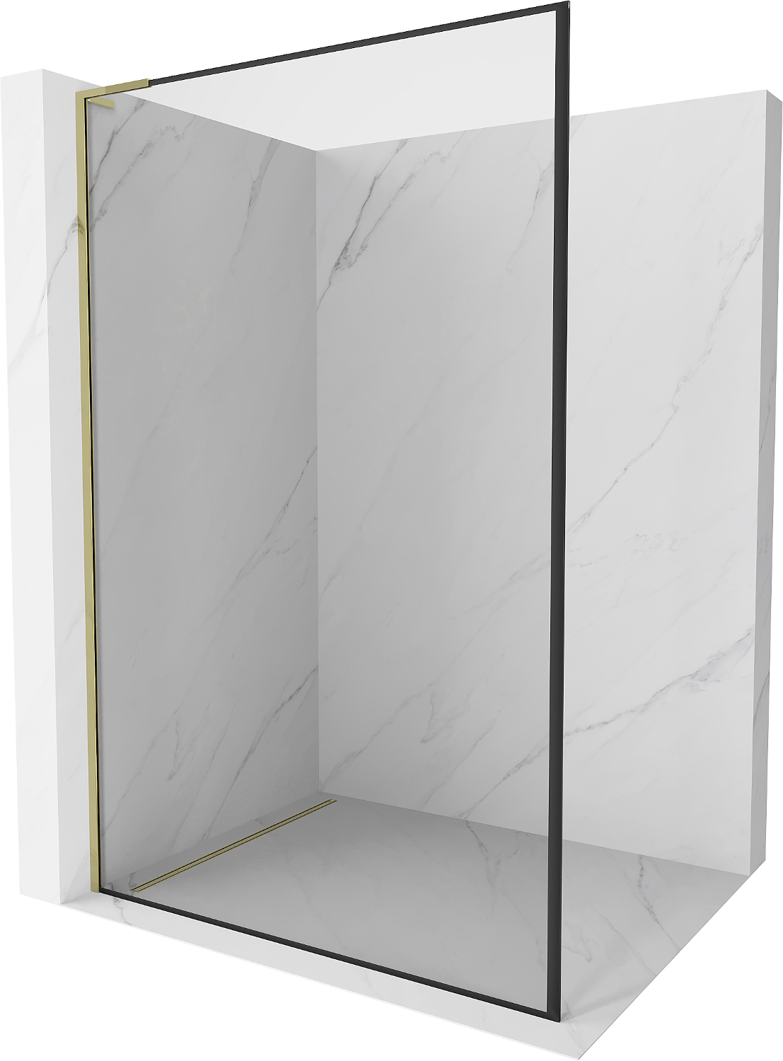 Mexen Kioto L sprchová stěna Walk-in 50 x 200 cm, černý rámeček, zlatá - 800-050-103-50-70