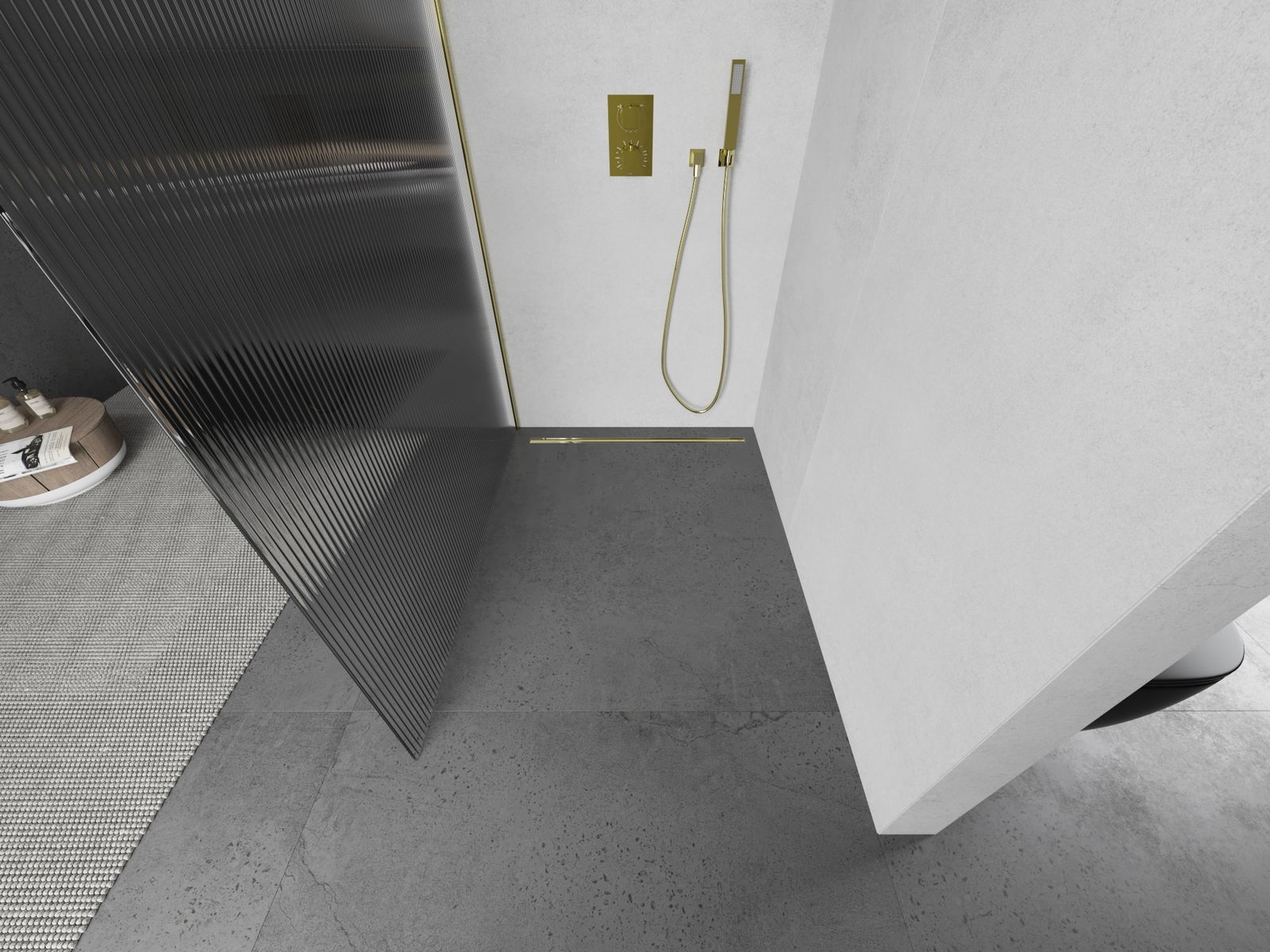 Mexen Kioto L sprchová stěna Walk-in 80 x 200 cm, proužky, zlatá - 800-080-103-50-09