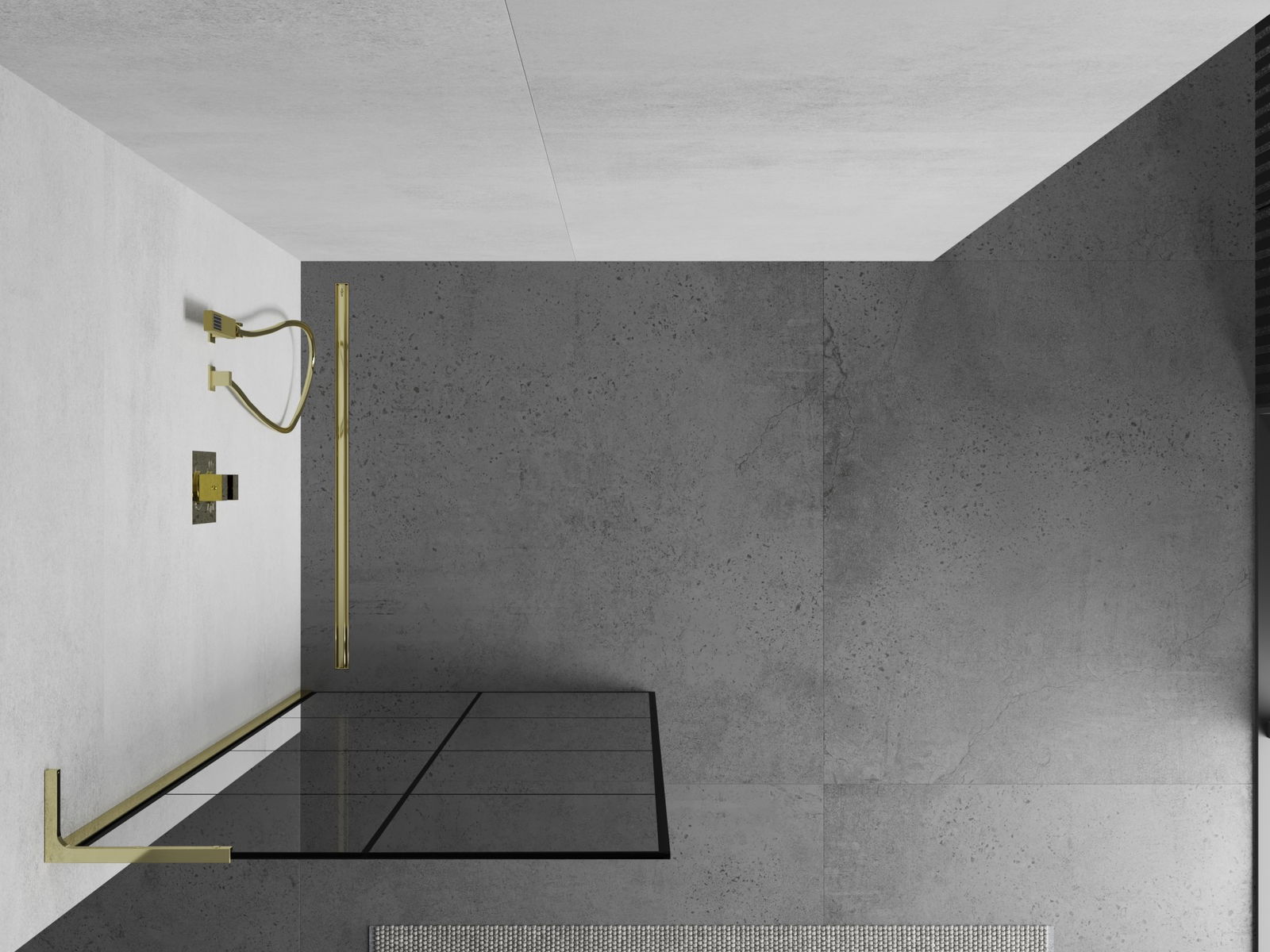 Mexen Kioto L sprchová stěna Walk-in 80 x 200 cm, černá mřížka, zlatá - 800-080-103-50-77