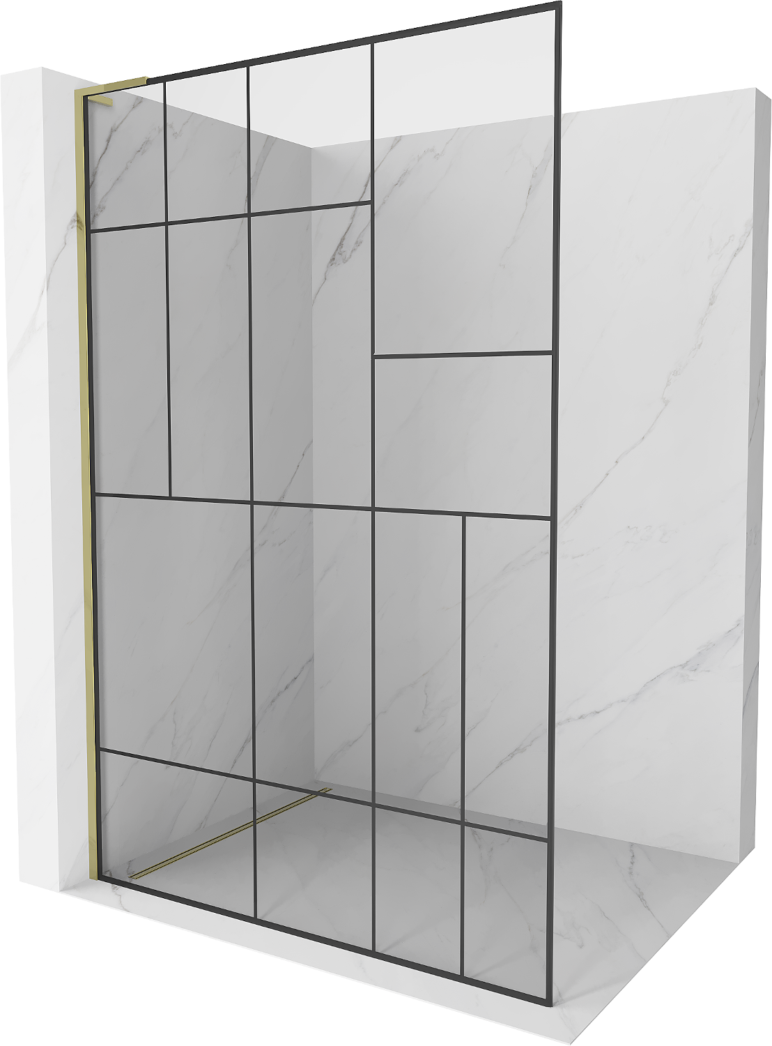 Mexen Kioto L sprchová zástěna Walk-in 110 x 200 cm, černý vzor, zlato - 800-110-103-50-78