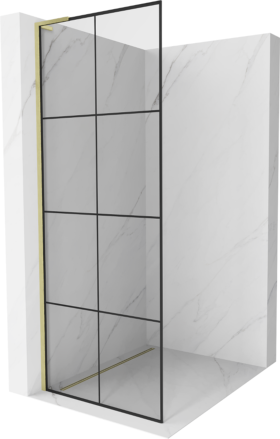 Mexen Kioto L sprchová stěna Walk-in 80 x 200 cm, černá mřížka, zlatá kartáčovaná - 800-080-103-55-77