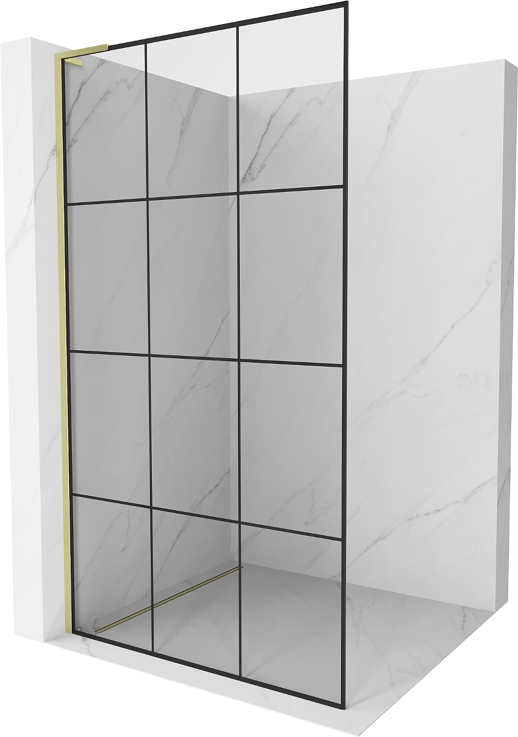 Mexen Kioto L sprchová zástěna Walk-in 120 x 200 cm, černá mřížka, zlato kartáčované - 800-120-103-55-77