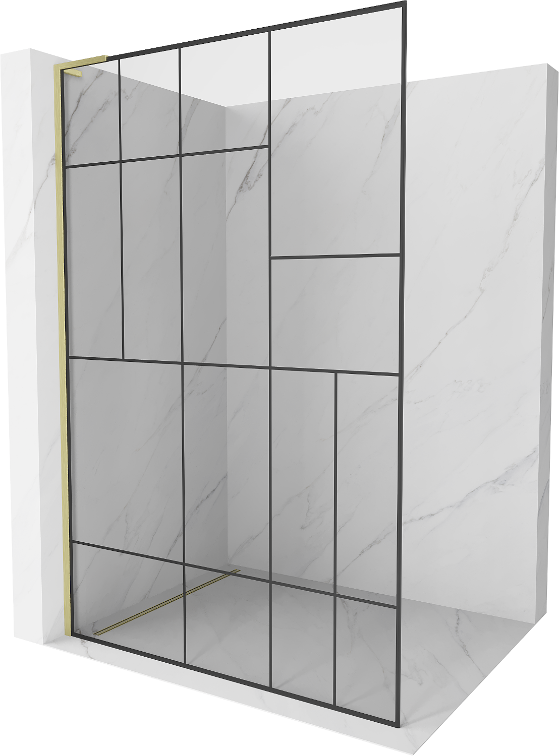 Mexen Kioto L sprchová stěna Walk-in 120 x 200 cm, černý vzor, zlatá kartáčovaná - 800-120-103-55-78