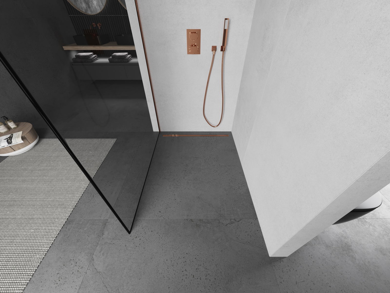 Mexen Kioto L sprchová stěna Walk-in 70 x 200 cm, černý rám, růžové zlato - 800-070-103-60-70