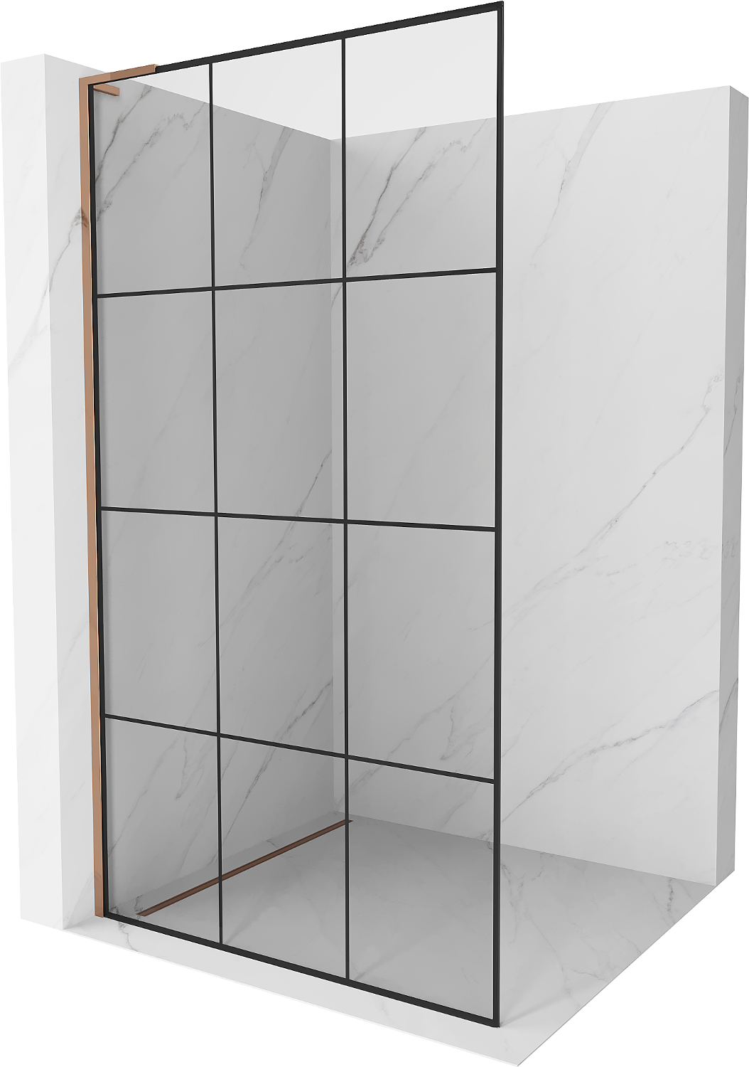 Mexen Kioto L sprchová stěna Walk-in 110 x 200 cm, černá mřížka, růžové zlato - 800-110-103-60-77