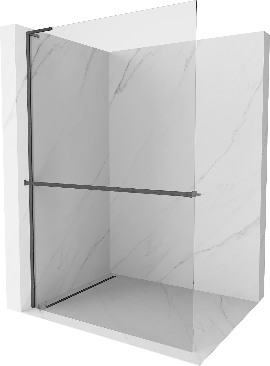 Mexen Kioto+ L sprchová stěna s poličkou Walk-in 100 x 200 cm, transparentní, kartáčovaná gun gray - 800-100-123-66-00