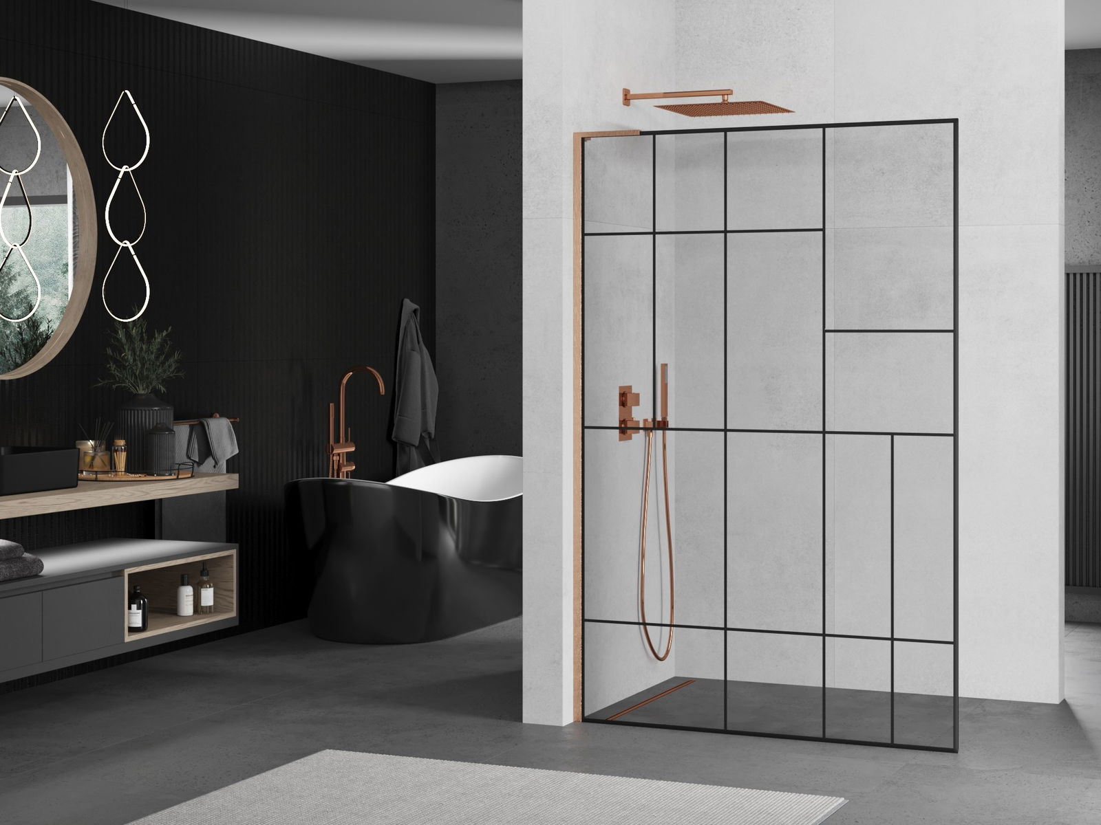 Mexen Kioto L sprchová stěna Walk-in 100 x 200 cm, černý vzor, kartáčovaná měď - 800-100-103-65-78