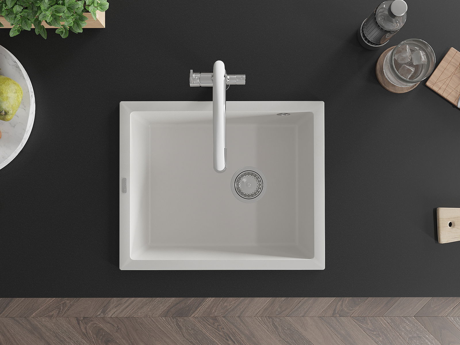 Povrch dřezu je odolný proti skvrnám a zabarvení, což usnadňuje jeho čištění a zachovává jeho barvu po dlouhou dobu používání. Estetický a praktický doplněk každé kuchyně.