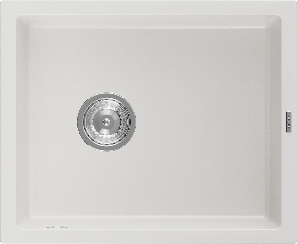 Mexen Pedro dřez granitový 1-komorový 560 x 460 mm, bílý, sifon chrom - 6508561000-20
