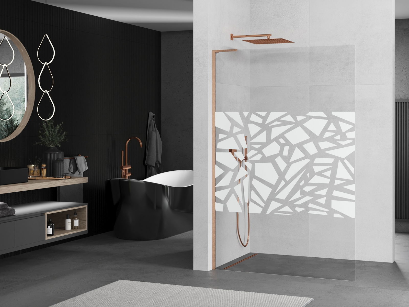 Mexen Kioto L sprchová stěna Walk-in 120 x 200 cm, bílý vzor, kartáčovaná měď - 800-120-103-65-85