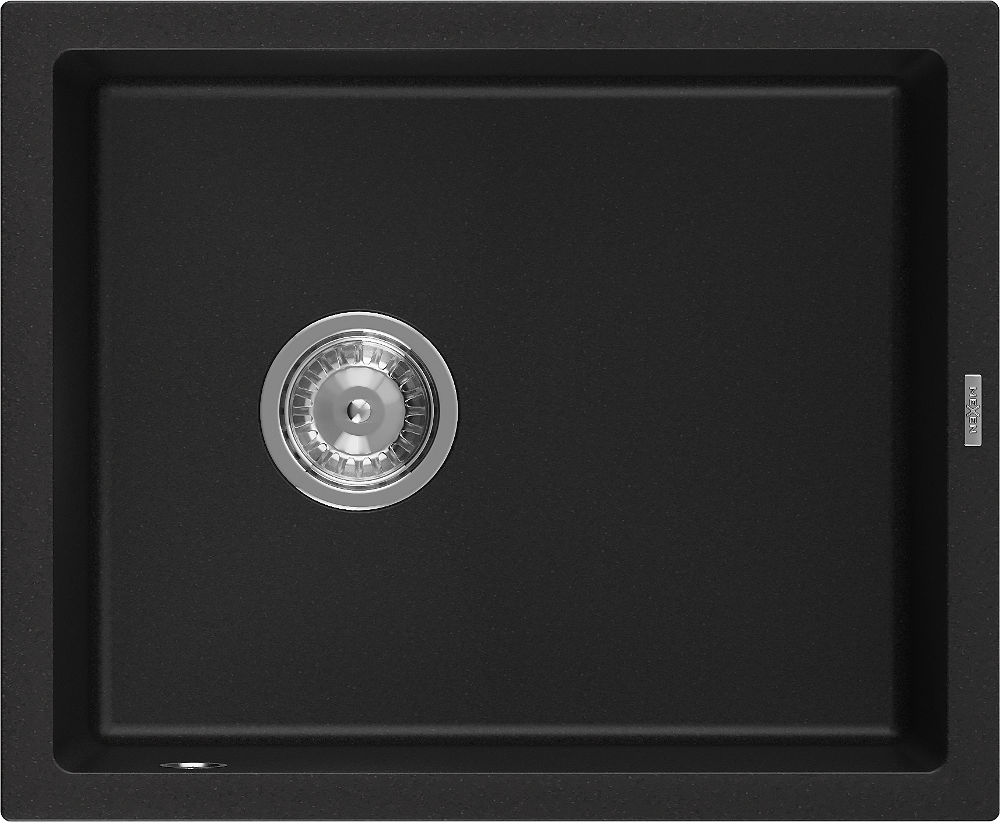 Mexen Pedro granitový dřez 1-komorový 560 x 460 mm, černý, sifon chrom - 6508561000-77