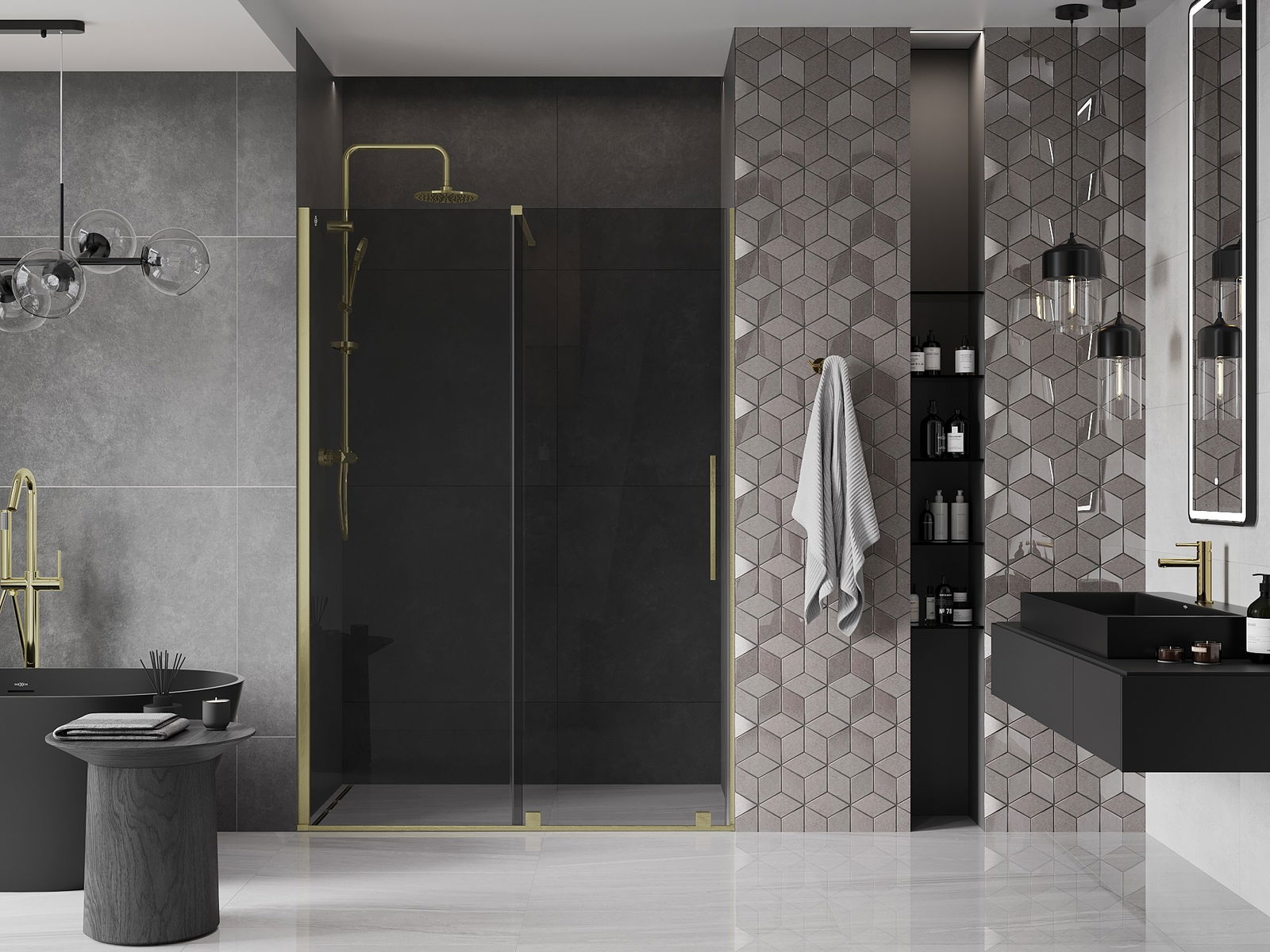 Mexen Velar posuvné sprchové dveře 140 cm, grafit, zlaté kartáčované - 871-140-000-41-55