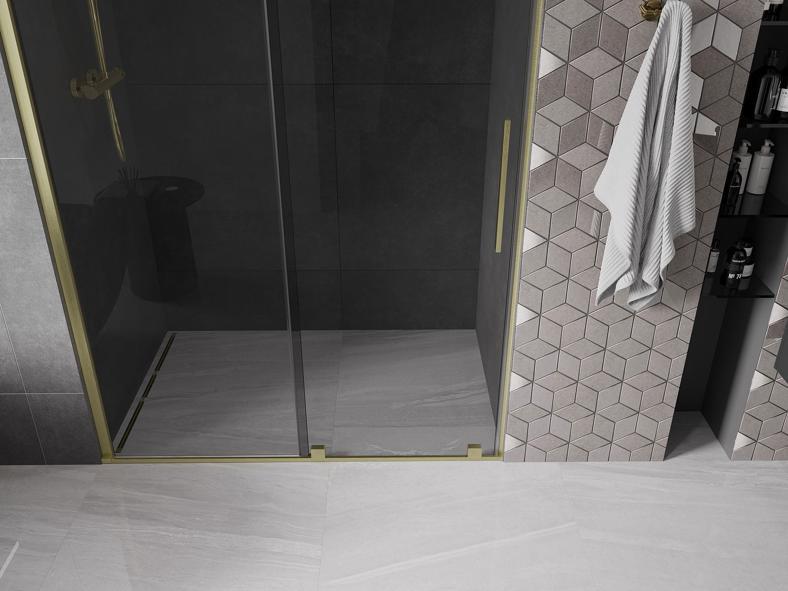 Praktický a pohodlný držák je vyroben z nerezové oceli. Moderní tvar ve spojení s povrchovou úpravou sladěnou s barvou profilů dodává celku moderní a stylový vzhled, zdůrazňující estetiku každé koupelny.