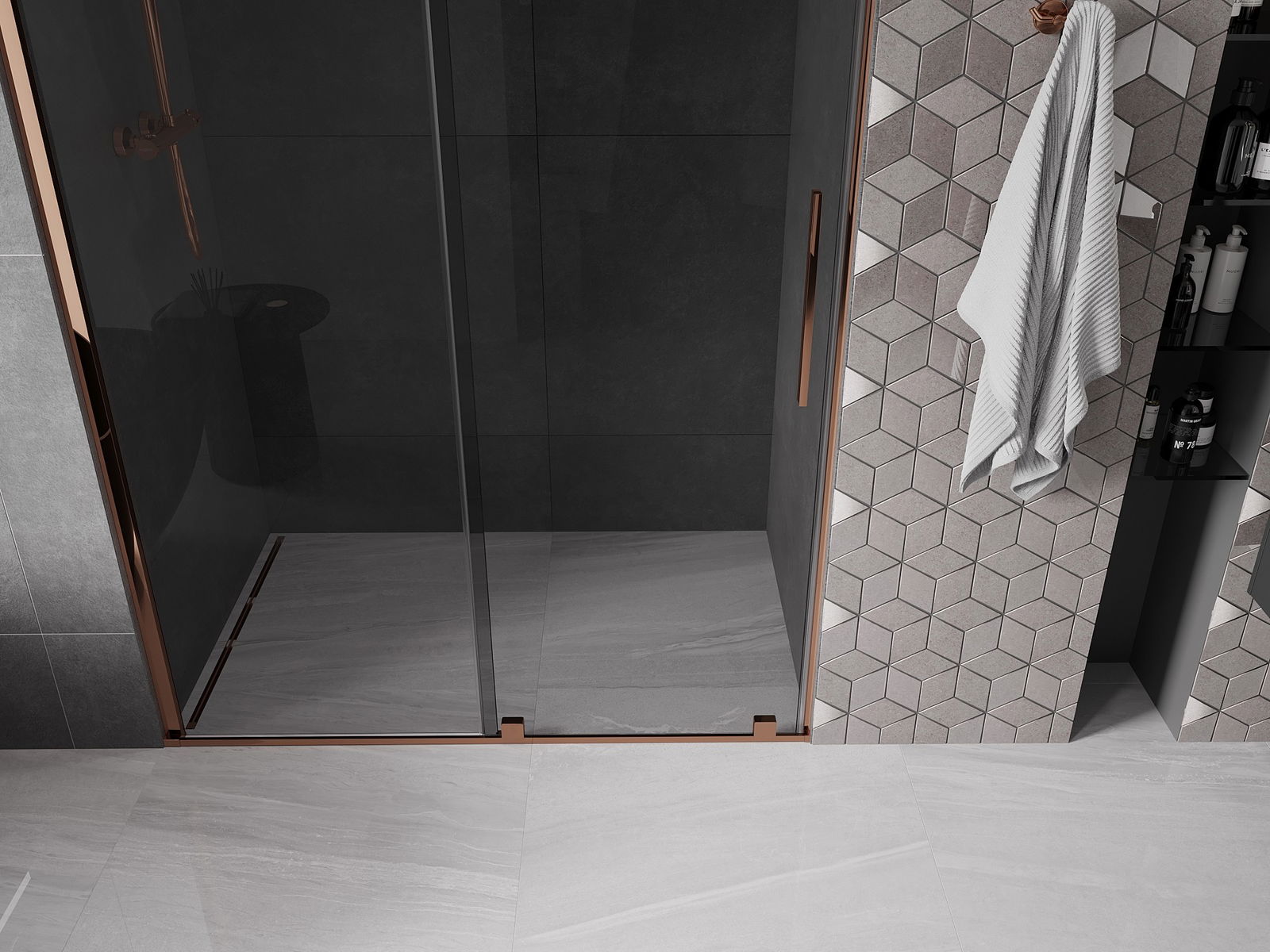 Mexen Velar posuvné sprchové dveře 150 cm, grafit, růžové zlato - 871-150-000-41-60
