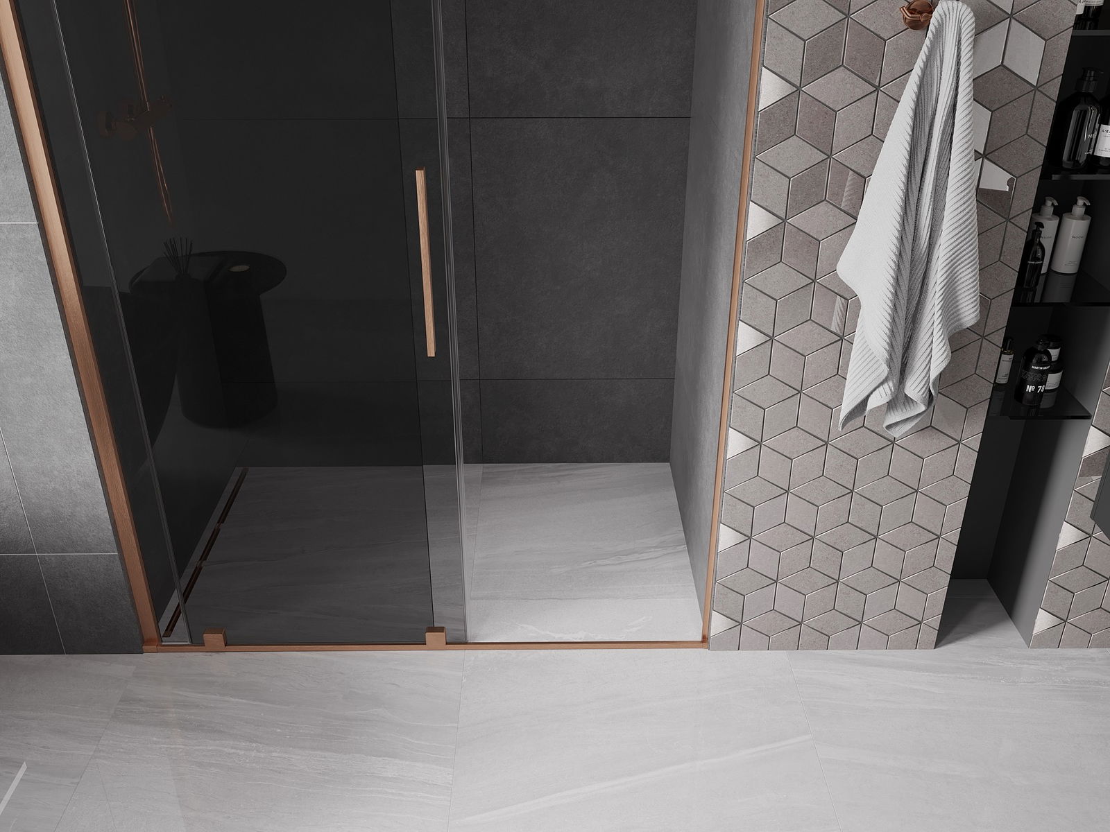 Mexen Velar posuvné sprchové dveře 150 cm, grafit, kartáčovaná měď - 871-150-000-41-65