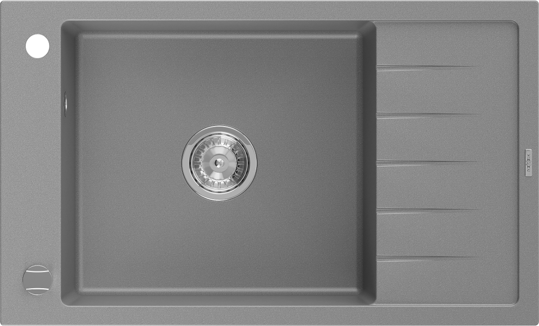 Mexen Elias jednodřezový granitový kuchyňský dřez s odkapávačem 795 x 480 mm, šedý, syfon chrom - 6511791005-71