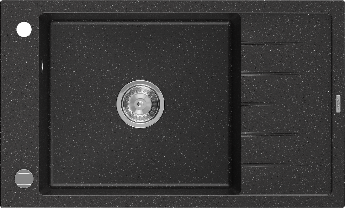 Mexen Elias granitový dřez s odkapávačem 1-komorový, 795 x 480 mm, černý/stříbrný metalik, chromovaný sifon - 6511791005-73
