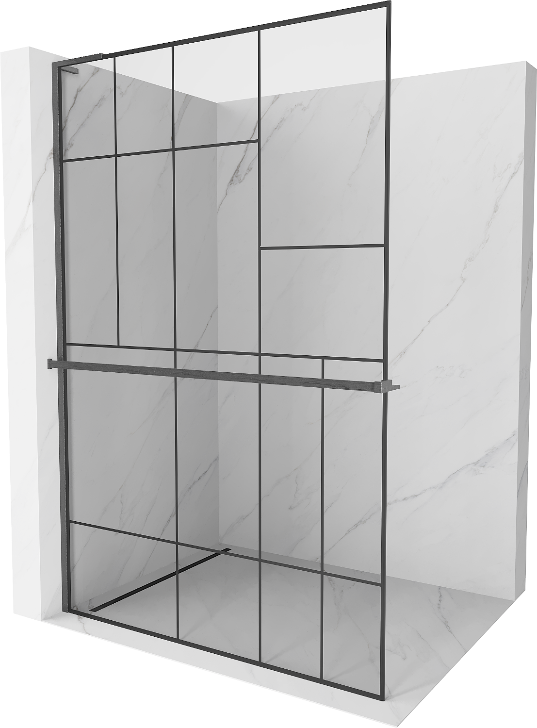 Mexen Kioto+ L sprchová stěna s poličkou Walk-in 70 x 200 cm, černý vzor, gun gray kartáčovaný - 800-070-123-66-78