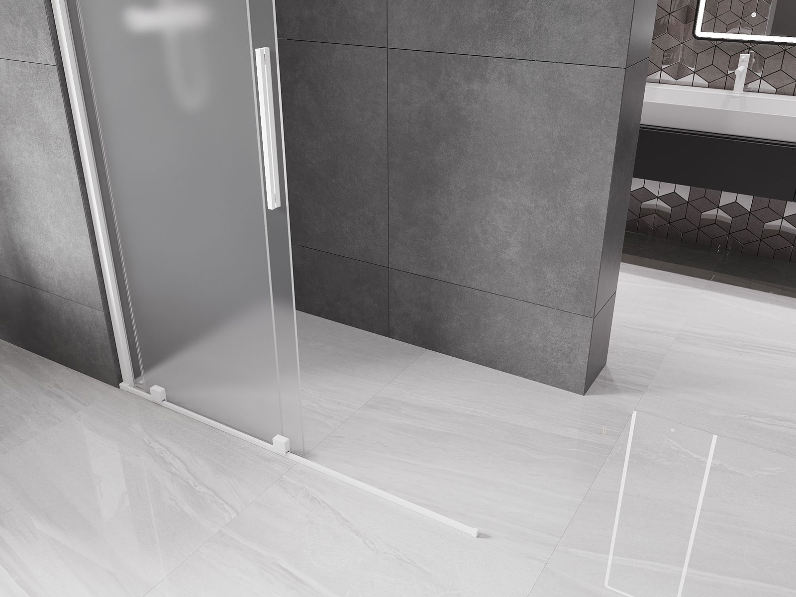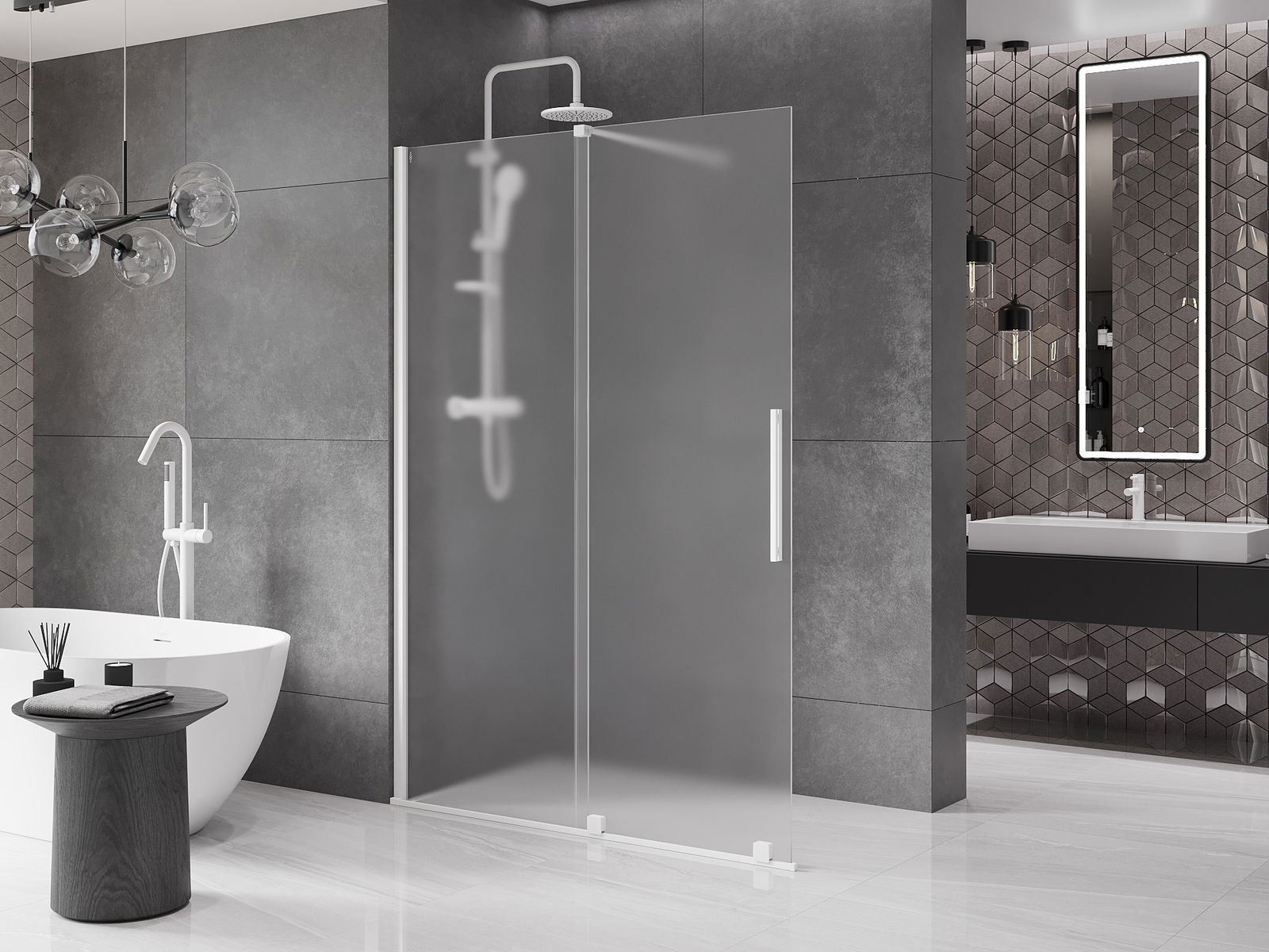 Mexen Velar posuvná sprchová zástěna Walk-in 130 x 200 cm, matné sklo 8 mm, bílá - 871-130-000-33-20