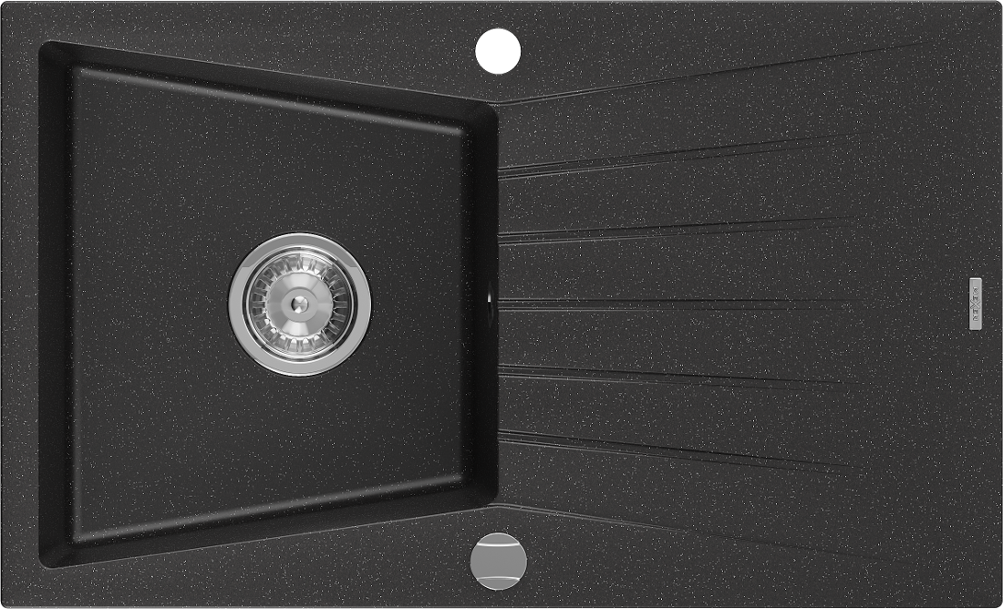 Mexen Cesar žulový dřez 1komorový s odkapávačem 775 x 470 mm, černý/stříbrný metalický, sifon chrom - 6514771010-73