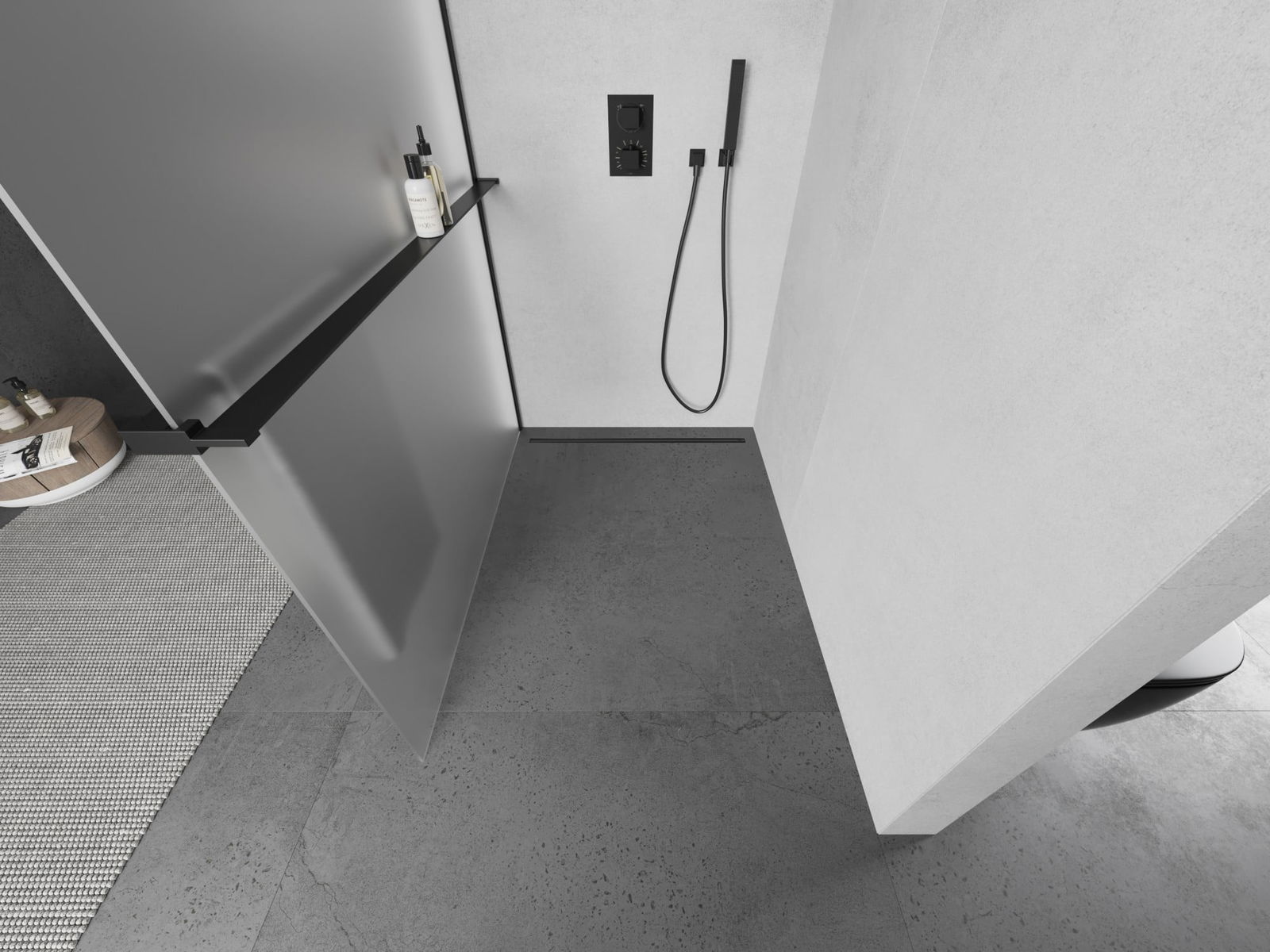 Mexen Kioto+ L sprchová stěna s policí Walk-in 90 x 200 cm, matná, černá - 800-090-123-70-30