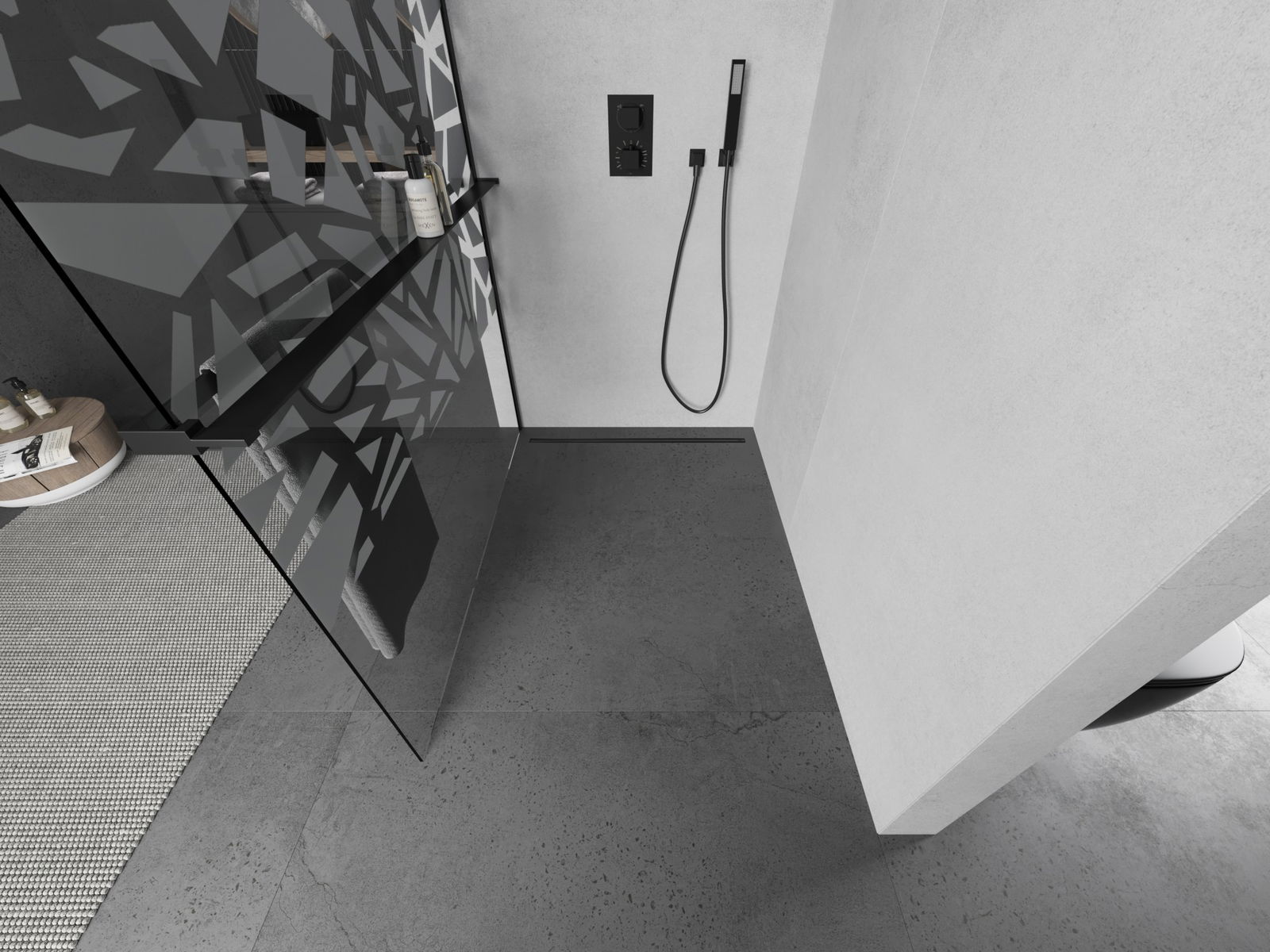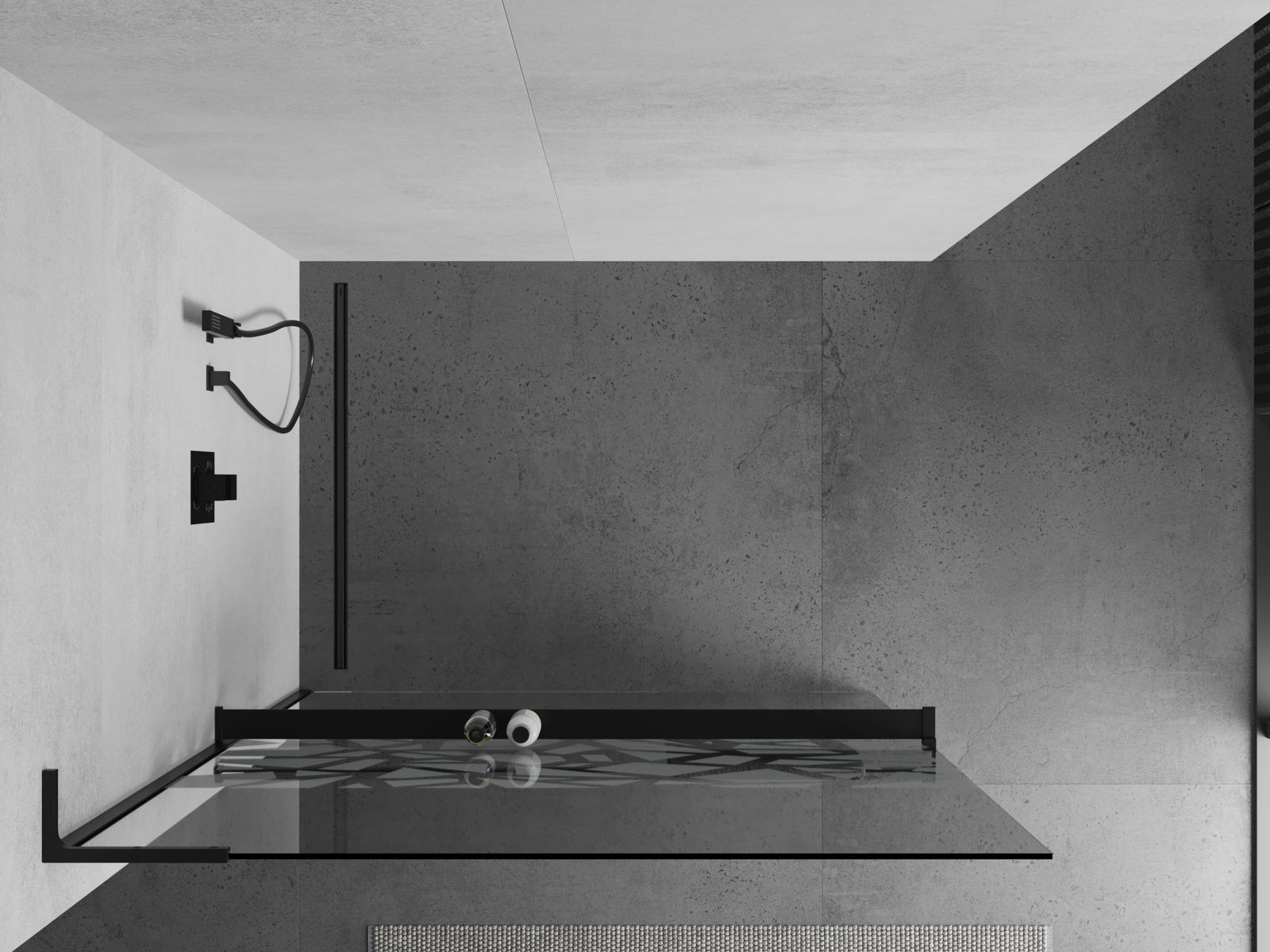 Mexen Kioto+ L sprchová stěna s policí Walk-in 70 x 200 cm, bílý vzor, černá - 800-070-123-70-85