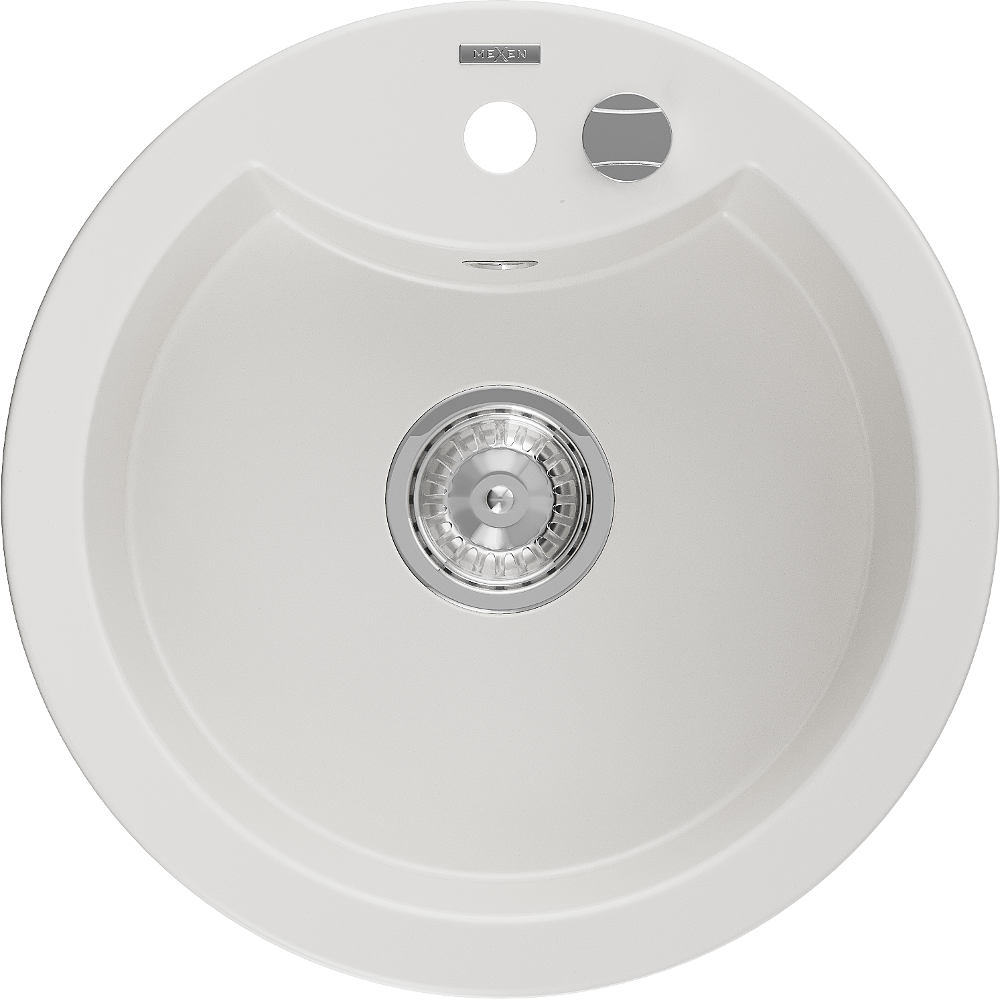 Mexen Diego granitový dřez 1-komorový 488 x 480 mm, bílý, sifon chrom - 6512481000-20