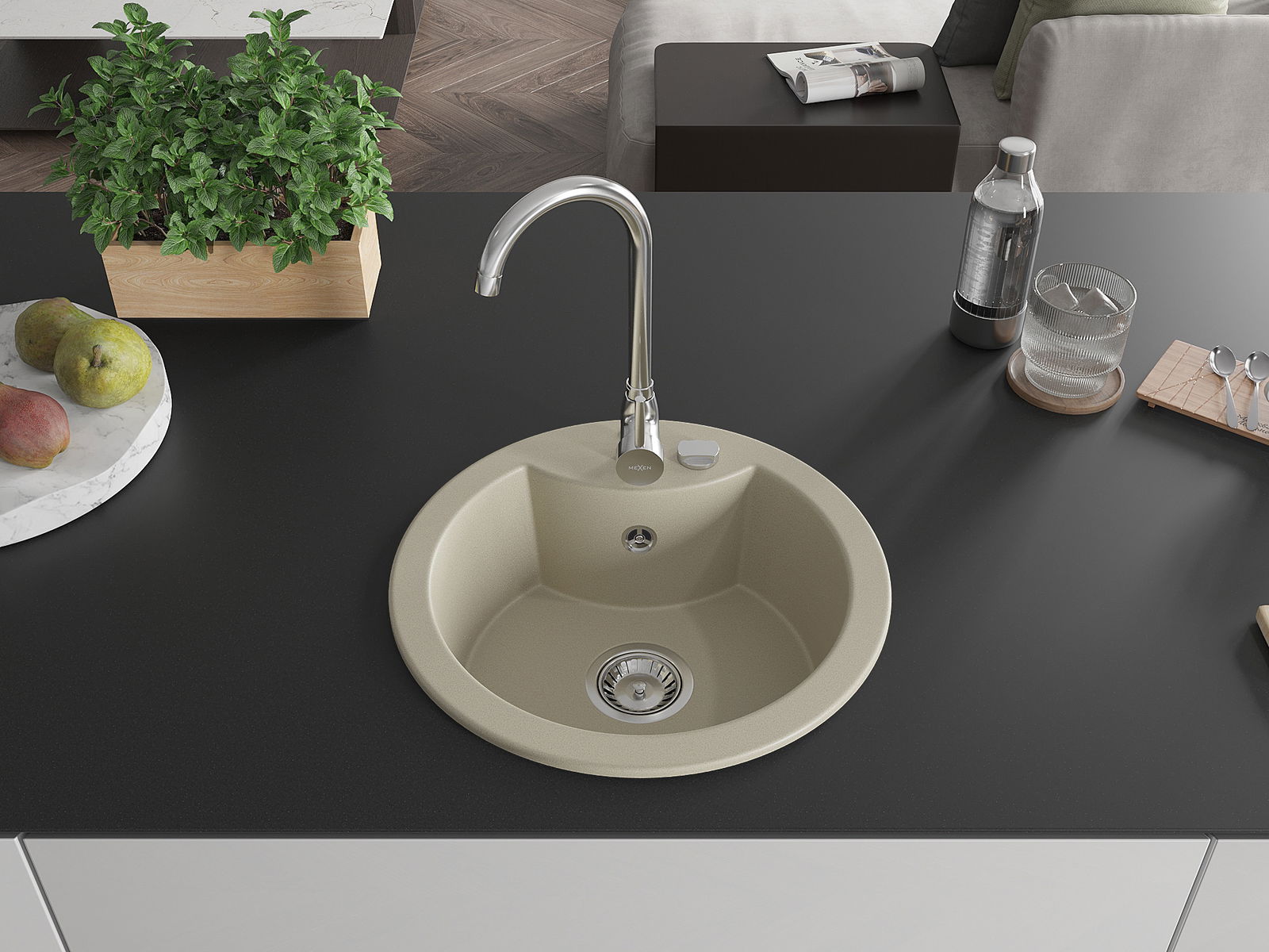Dřez byl vyroben z vysoce kvalitního granitu. Představuje elegantní a především praktický doplněk každé kuchyně, bez ohledu na její styl. Vysoká kvalita a trvanlivost granitu zajišťují dlouholeté používání.