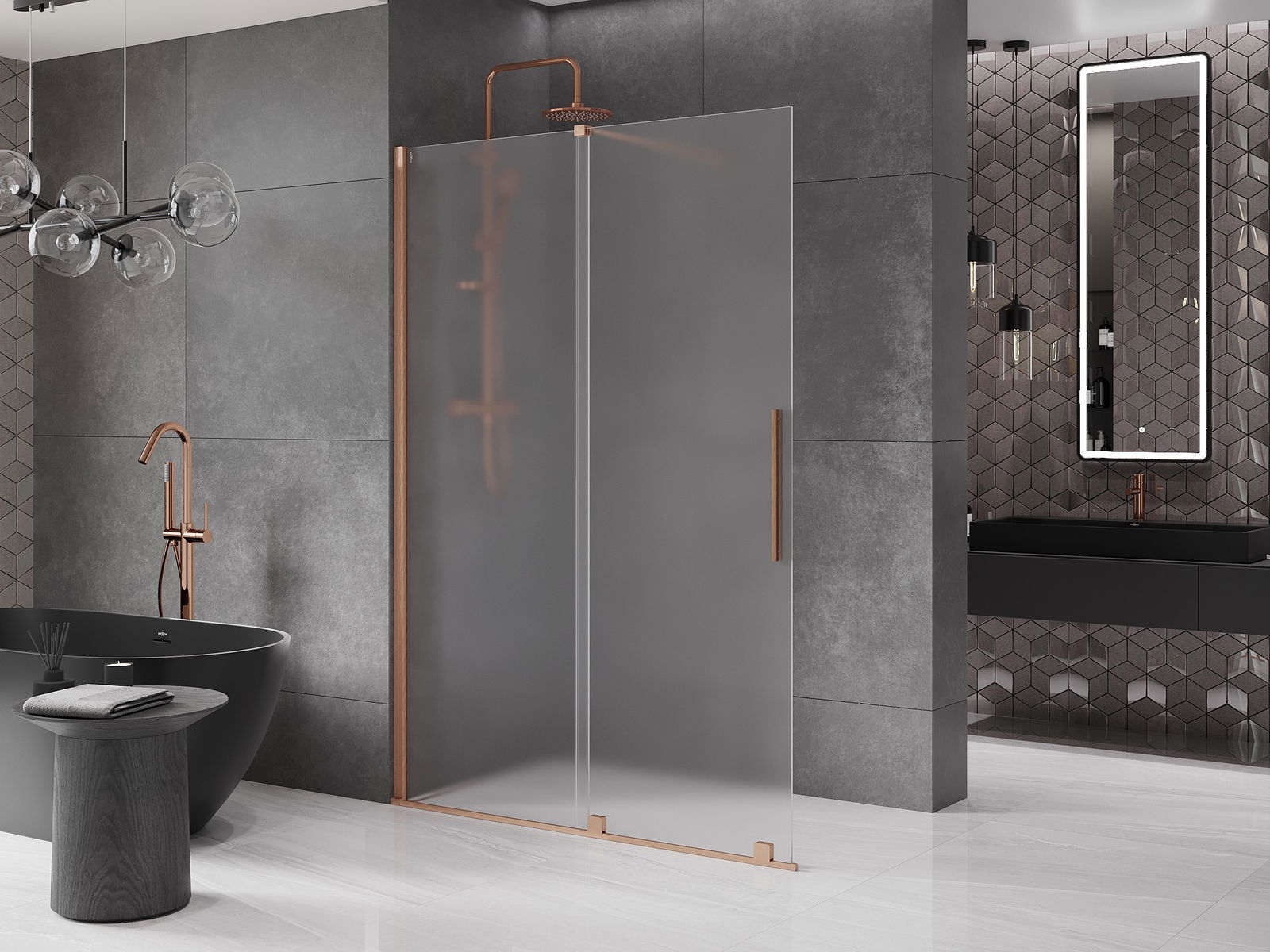 Mexen Velar posuvná sprchová stěna Walk-in 150 x 200 cm, matné sklo 8 mm, kartáčovaná měď - 871-150-000-33-65