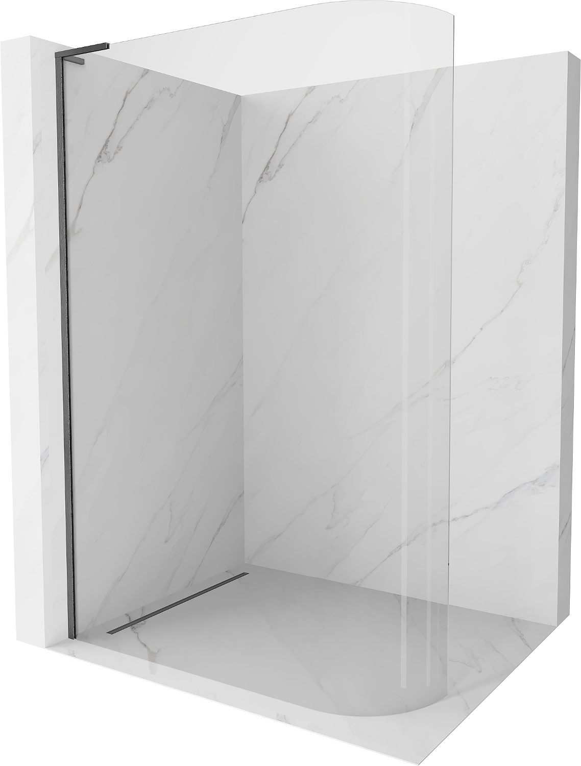 Mexen Kioto-R L zaoblená sprchová stěna Walk-in 110 x 200 cm, průhledná, kartáčovaná šedá gun - 800-110-103-66-06