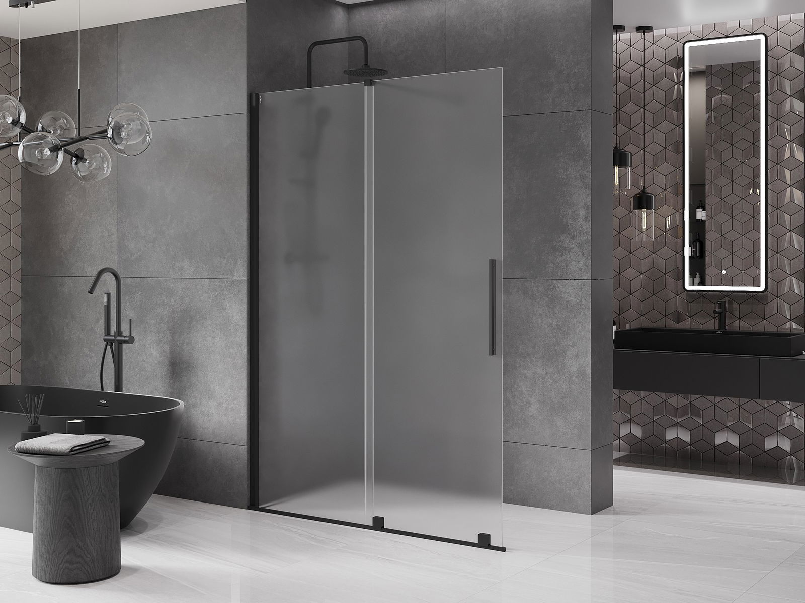 Mexen Velar posuvná sprchová stěna Walk-in 130 x 200 cm, námraza 8 mm, černá - 871-130-000-33-70