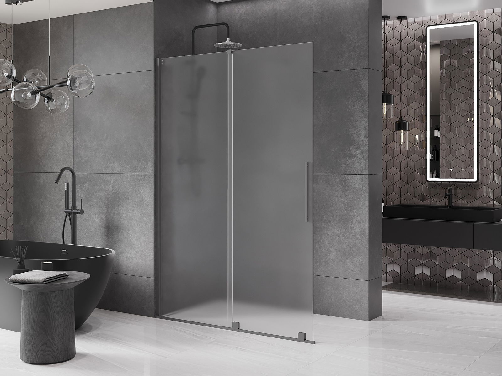 Mexen Velar posuvná sprchová stěna Walk-in 130 x 200 cm, námraza 8 mm, gun metal - 871-130-000-33-95