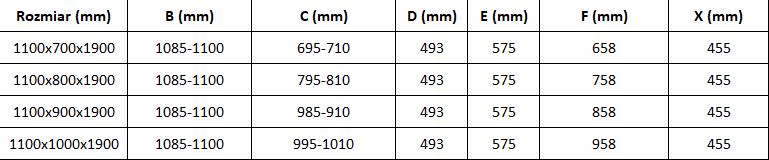 Velikost: 110x90 cm (dveře 110 cm, stěna 90 cm)