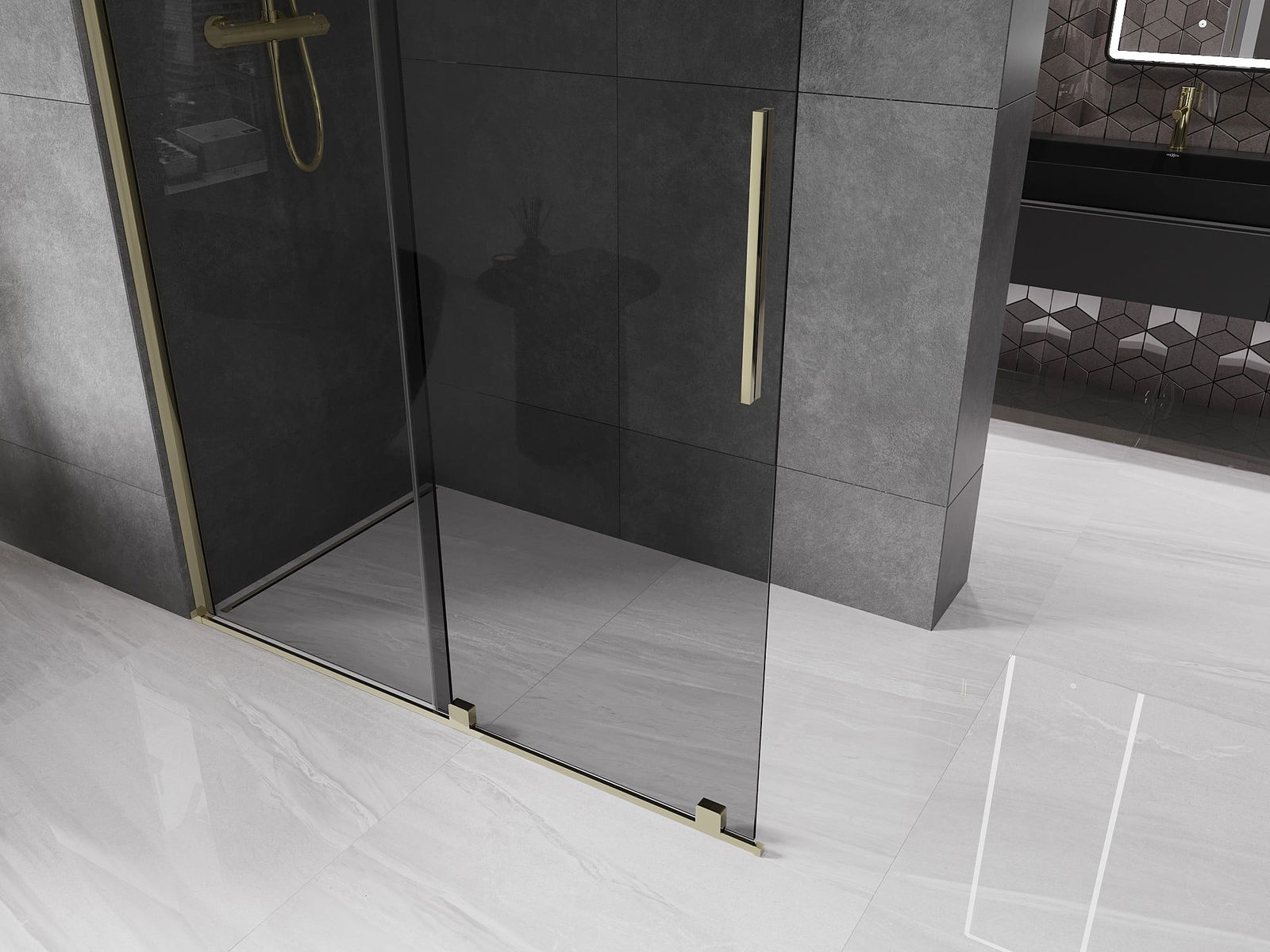 Mexen Velar posuvná sprchová stěna Walk-in 150 x 200 cm, grafit 8 mm, zlatá - 871-150-000-43-50