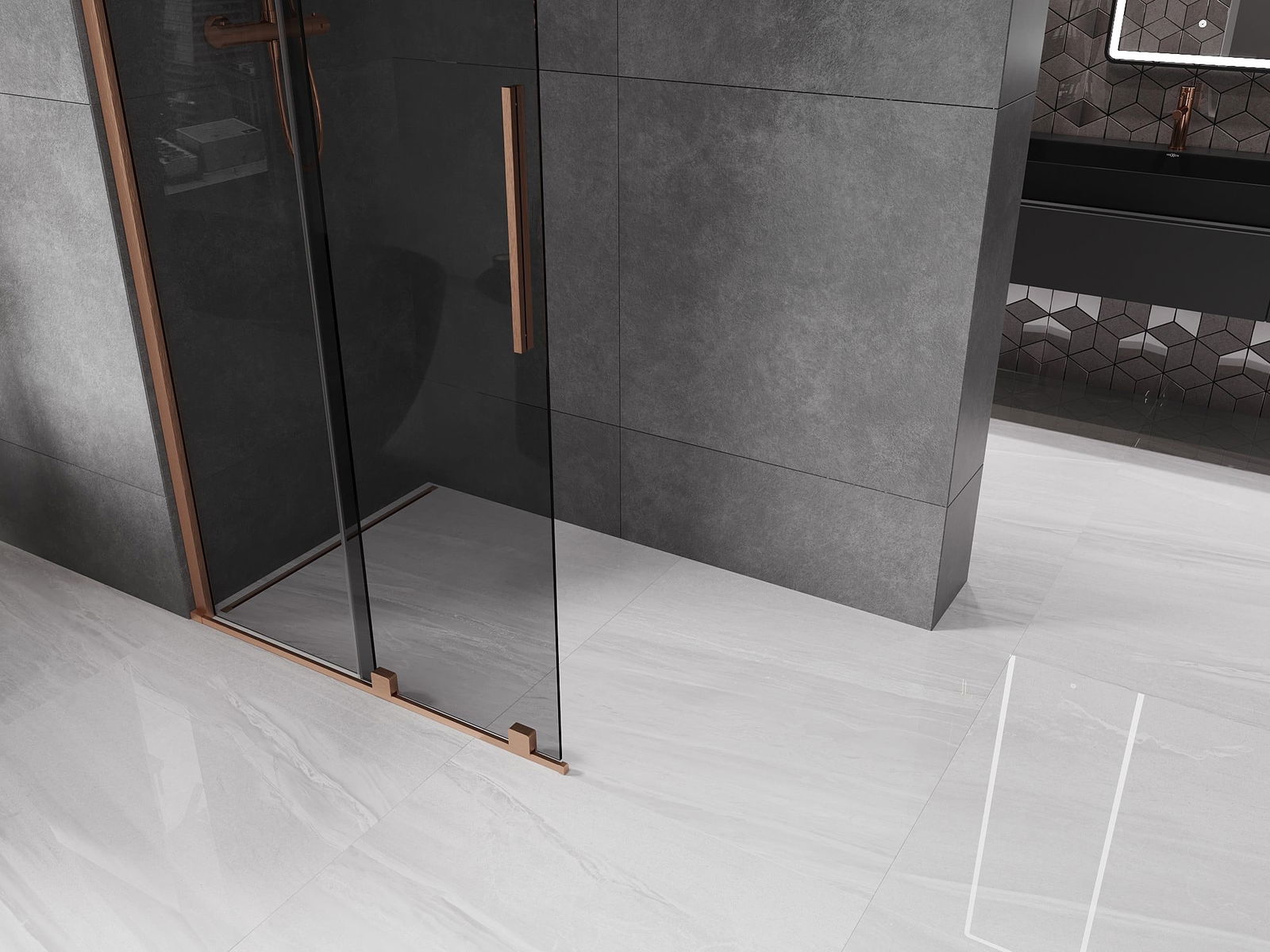 Mexen Velar posuvná sprchová stěna Walk-in 110 x 200 cm, grafit 8 mm, kartáčovaná měď - 871-110-000-43-65