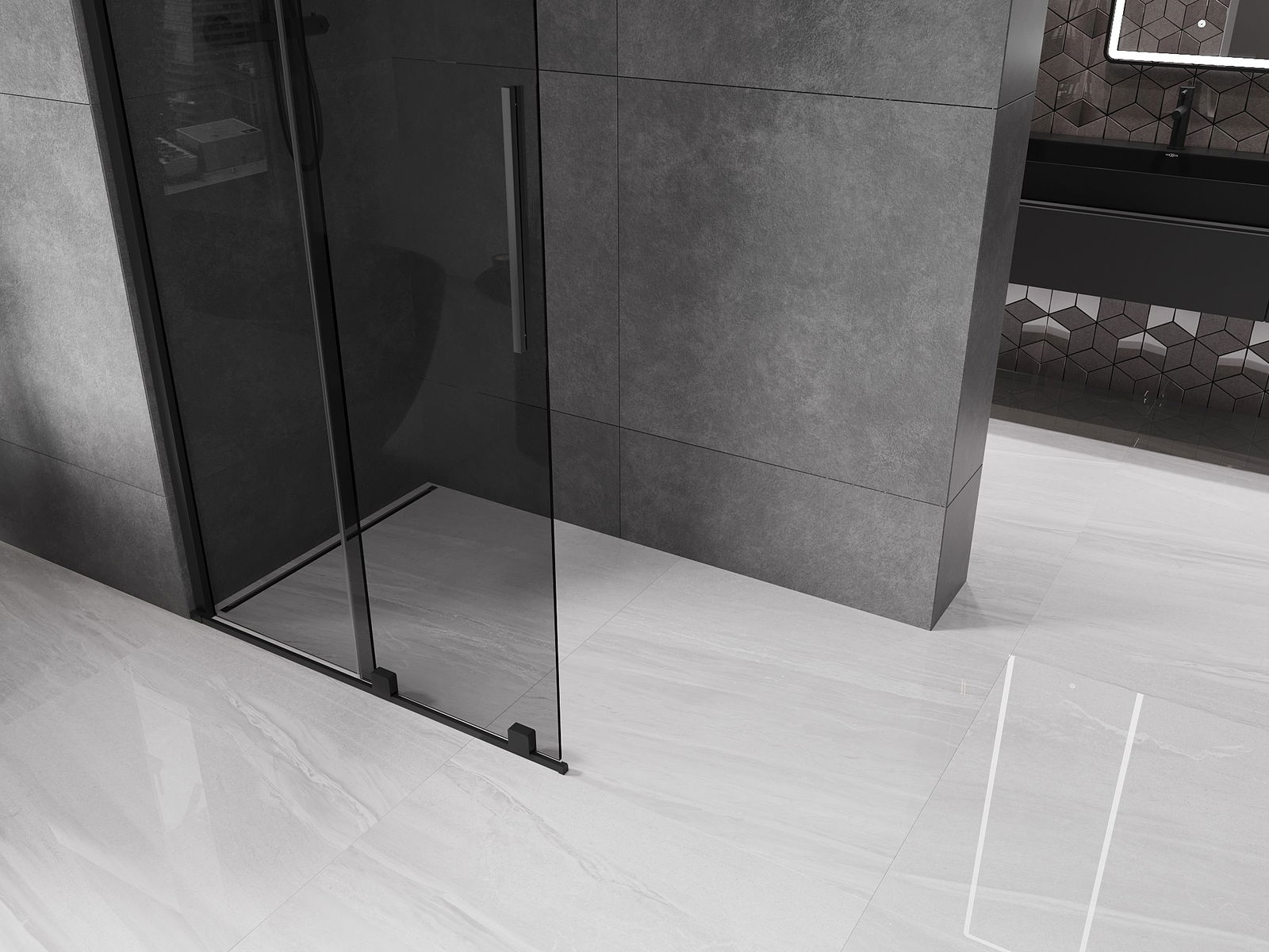 Mexen Velar sprchová stěna posuvná Walk-in 80 x 200 cm, grafit 8 mm, černá - 871-080-000-43-70