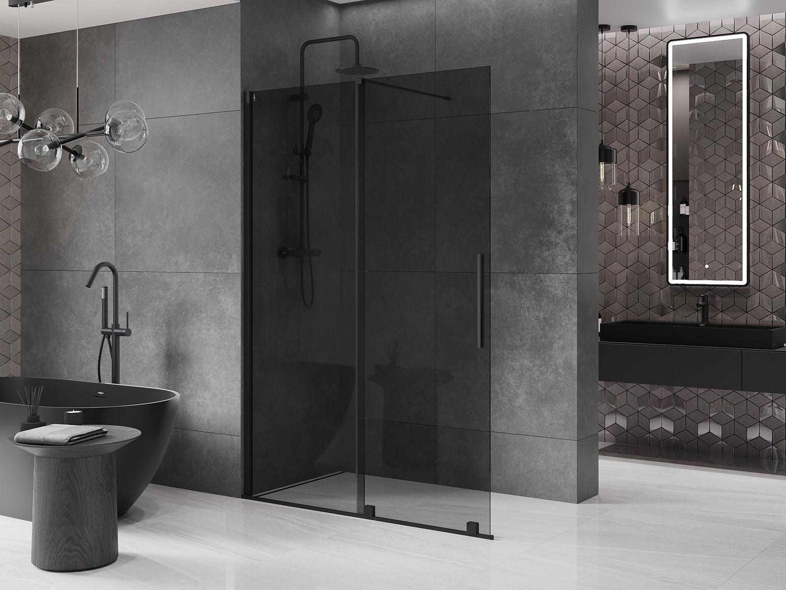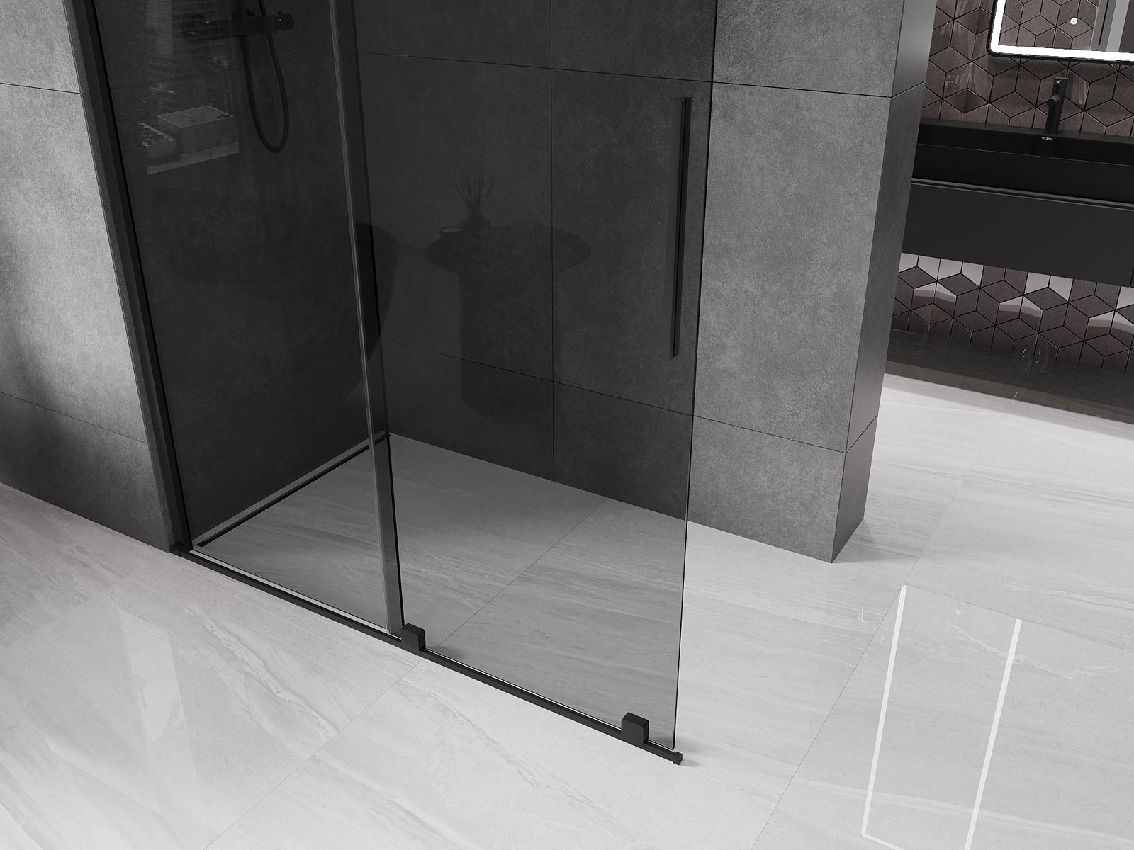 Mexen Velar sprchová zástěna posuvná Walk-in 140 x 200 cm, grafit 8 mm, černá - 871-140-000-43-70