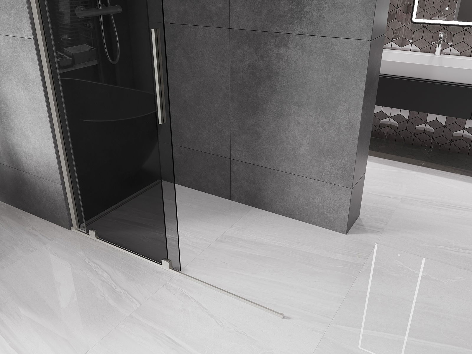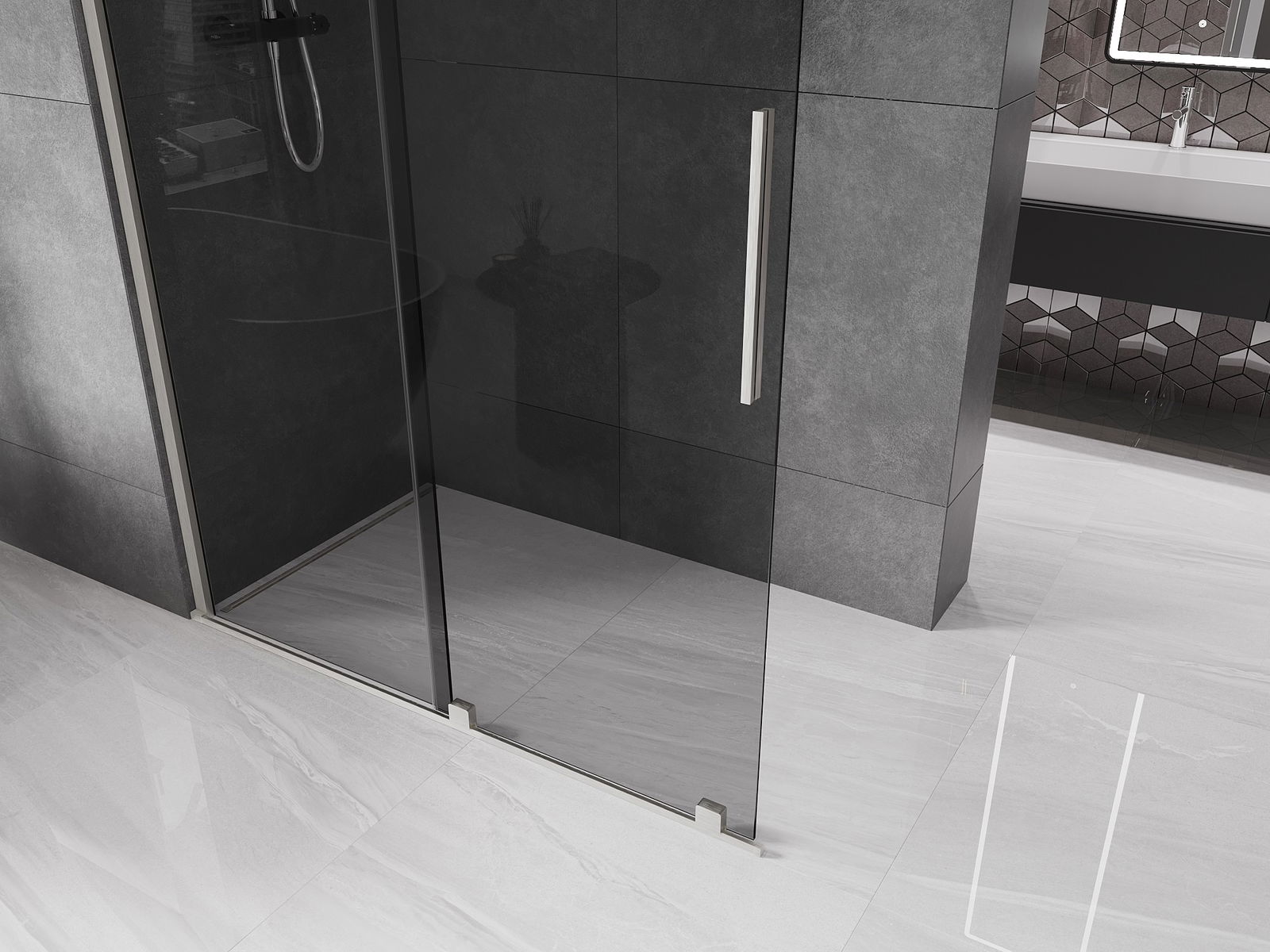 Mexen Velar sprchová zástěna posuvná Walk-in 150 x 200 cm, grafit 8 mm, kartáčovaný nikl - 871-150-000-43-97