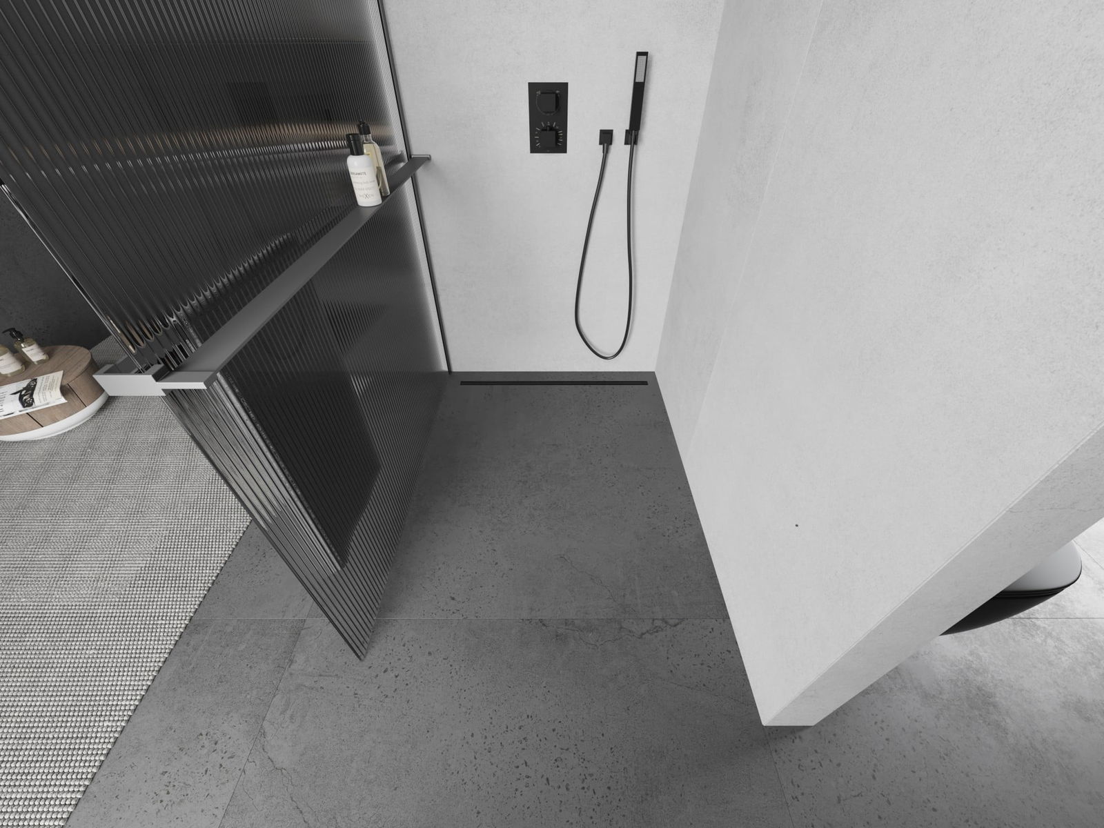 Mexen Kioto+ L sprchová stěna s poličkou Walk-in 110 x 200 cm, proužky, gun metal - 800-110-123-95-09