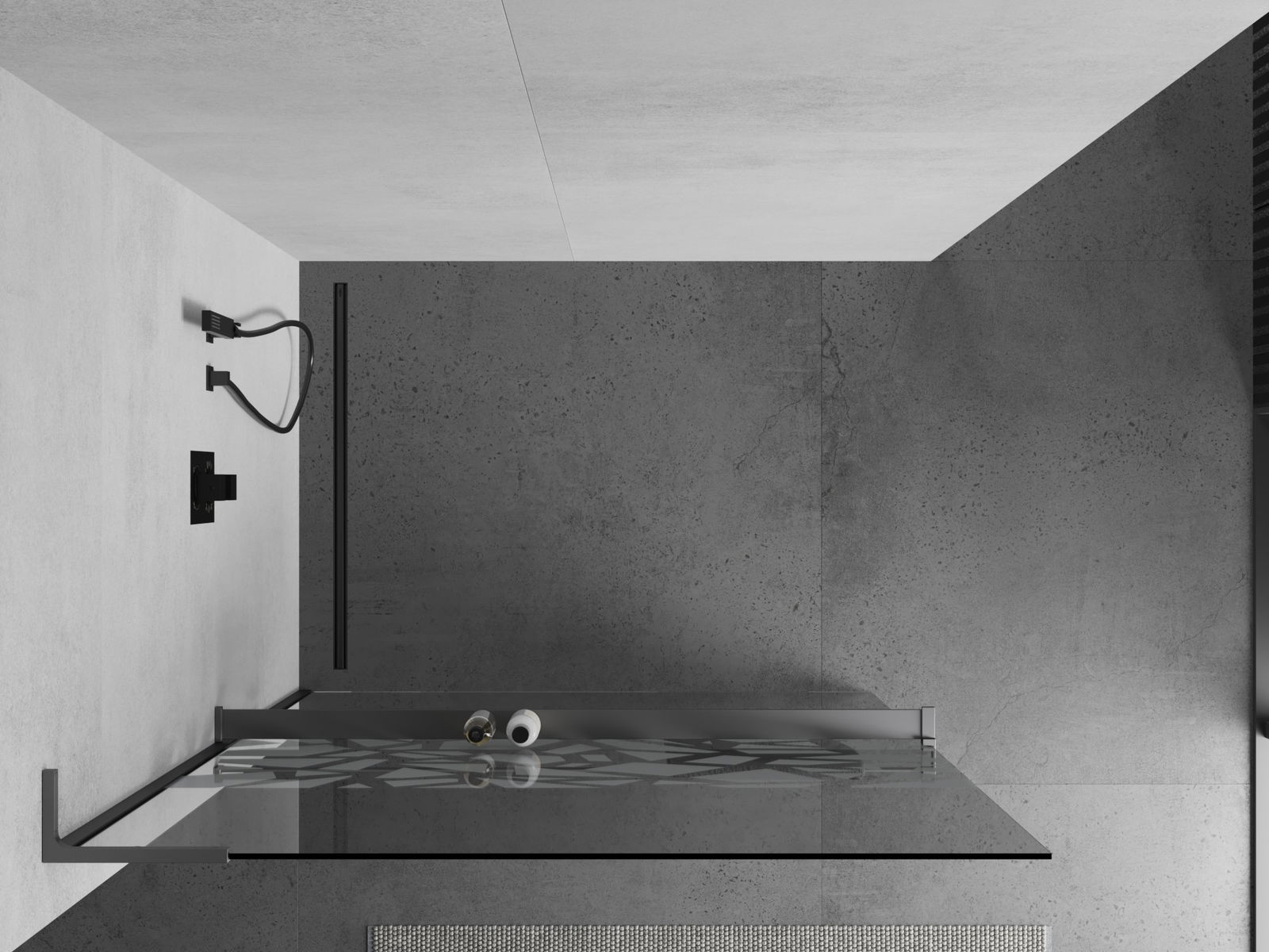 Mexen Kioto+ L sprchová stěna s poličkou Walk-in 90 x 200 cm, bílý vzor, gun metal - 800-090-123-95-85