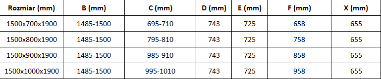 Velikost: 150x70 cm (dveře 150 cm, stěna 70 cm)