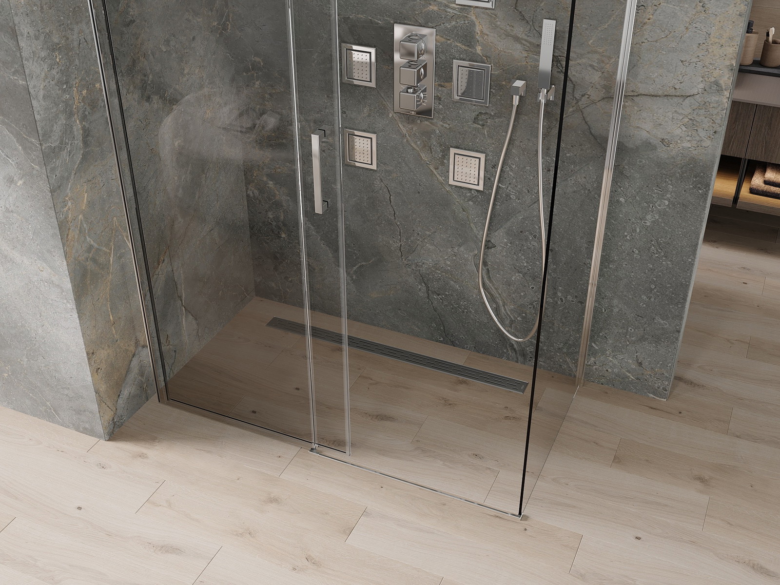 Díky použití univerzálního montážního systému mohou být sprchové dveře namontovány na pravé nebo levé straně, podle potřeby. Díky tomu můžete snadno navrhnout sprchu přizpůsobenou prostoru koupelny.
